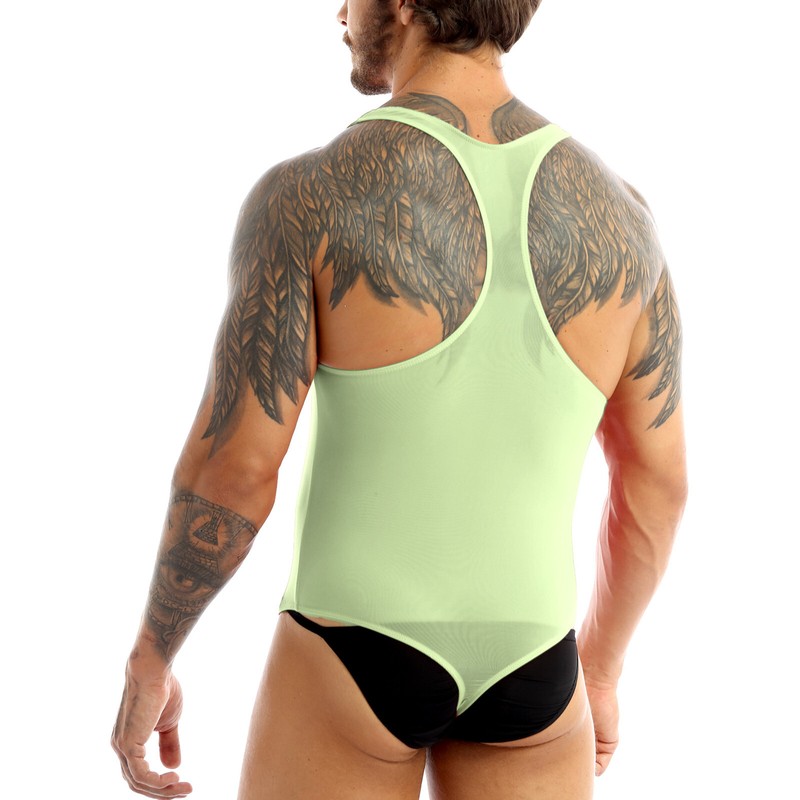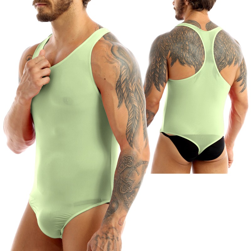 Mens Bulge Pouch Bodysuit One-piece Swimsuit Mankini Nightwear.