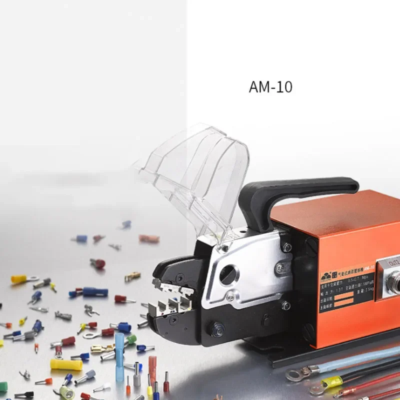 Product parameters: Name: Pneumatic end crimping machine Model: AM-10 Air pressure range: 0.5-0.7MPa Output force: 1.3T (when air pressure is 0.5MPa) Weight: 3.5kg Dimensions: 266*142*117mm