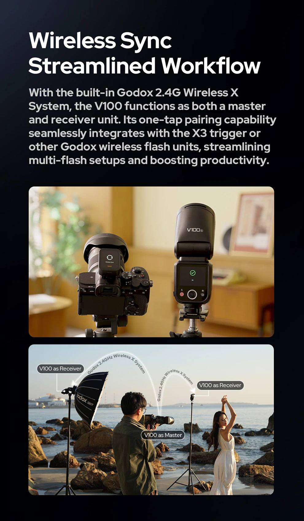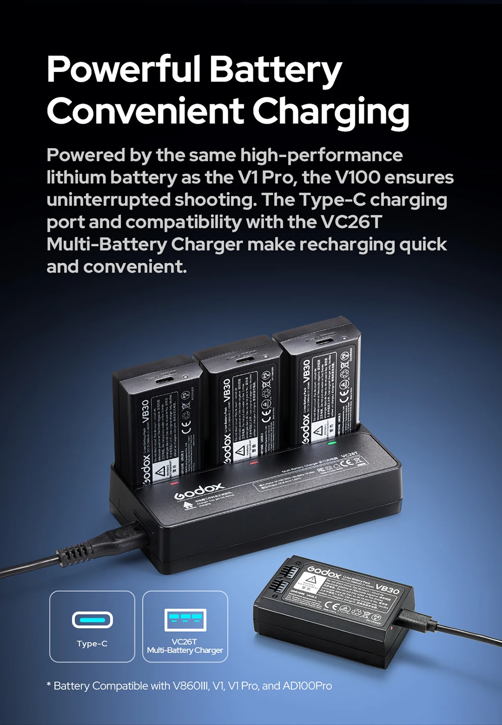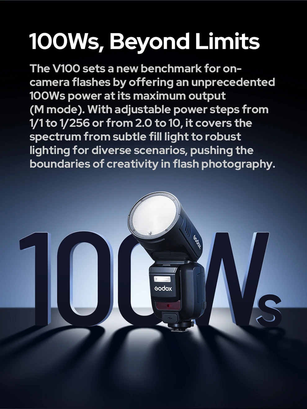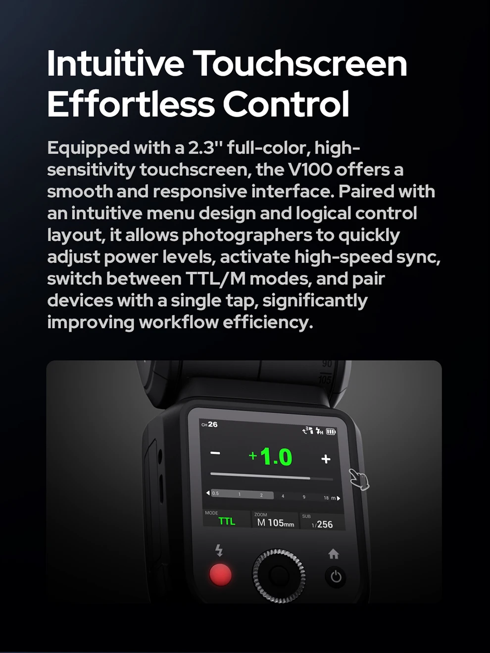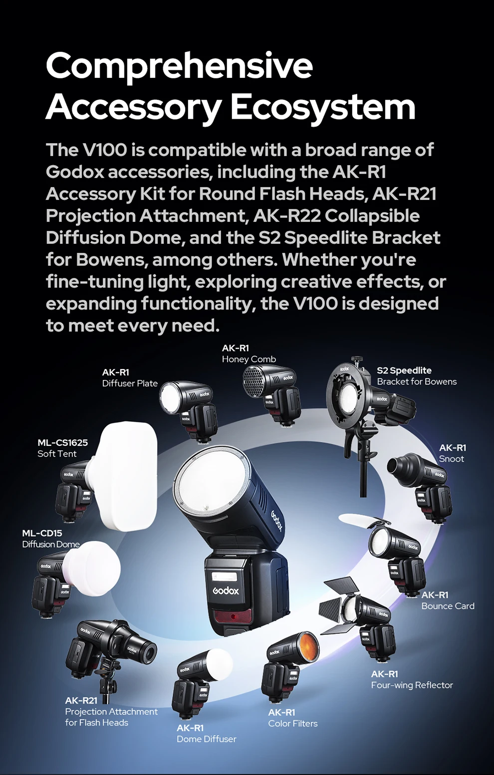 Godox V100 C/N/S/F/O 100Ws TTL Round Head Camera Flash Touch Screen Speedlite