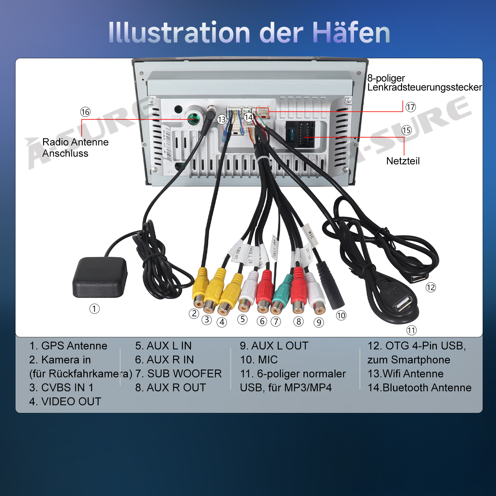 8” Android 14 Autoradio | Drahtloses CarPlay & Android Auto | GPS | Bluetooth 5.0 | WiFi | FM RDS | Plug & Play