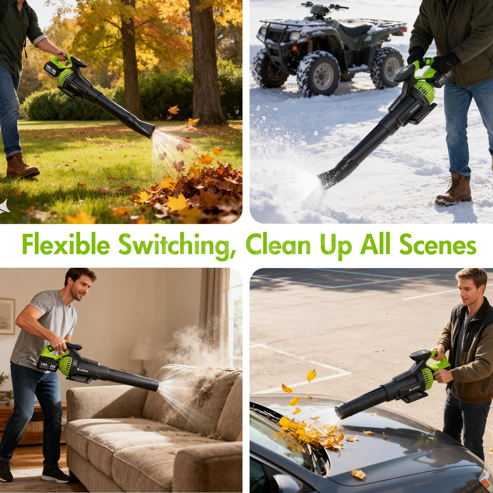 【Smart 4-Speed Control for Any Task】Master any cleaning scenario with the intelligent 4-speed adjustment system. Effortlessly switch from a gentle breeze for delicate areas to a powerful storm force for heavy debris—perfect for yard leaves, workshop dust, or appliance cleaning. One tool, endless possibilities, your ultimate cleaning partner.