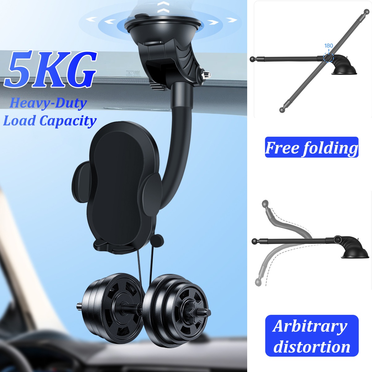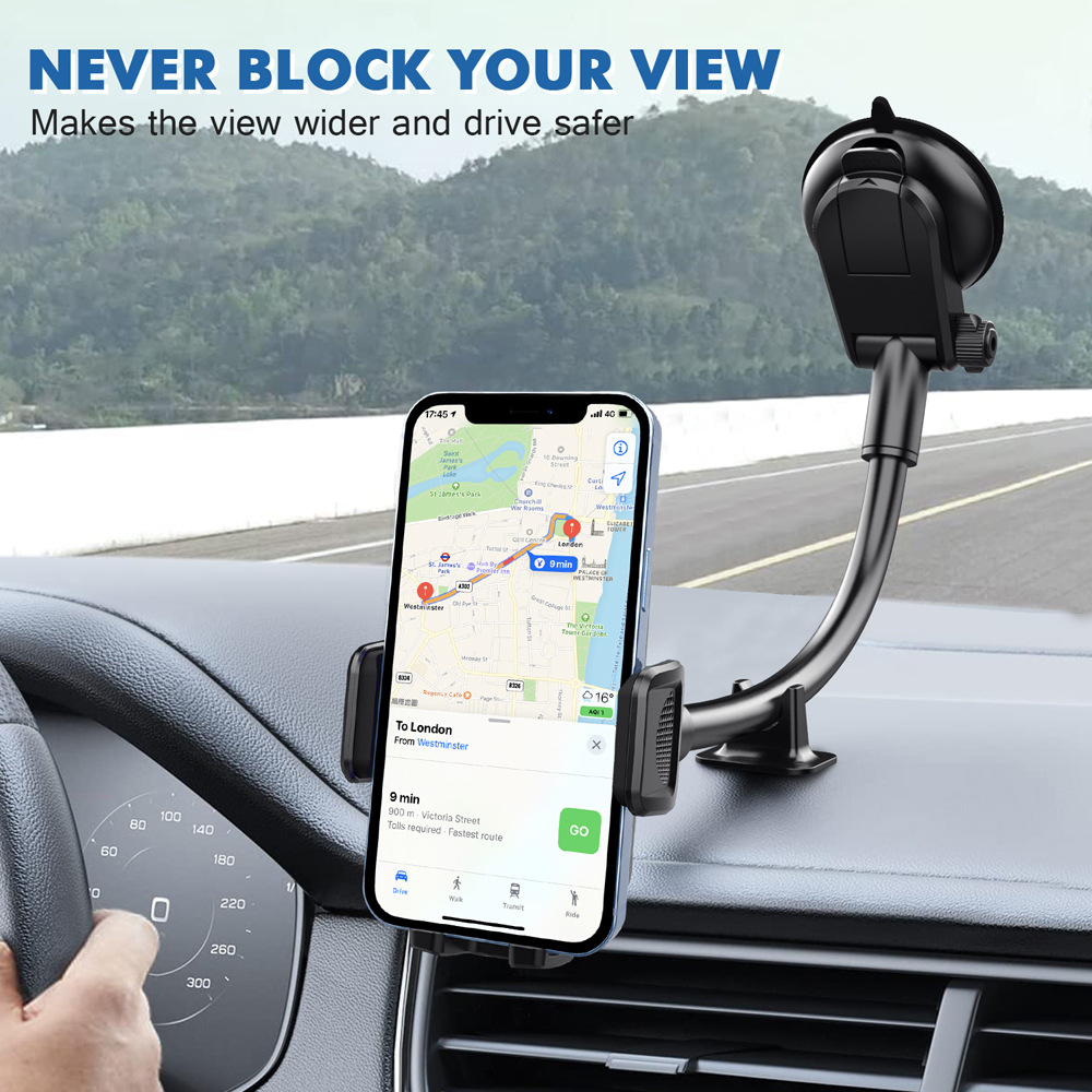 -2 in 1 suction cup vehicle mobile phone holder, one hand operation.