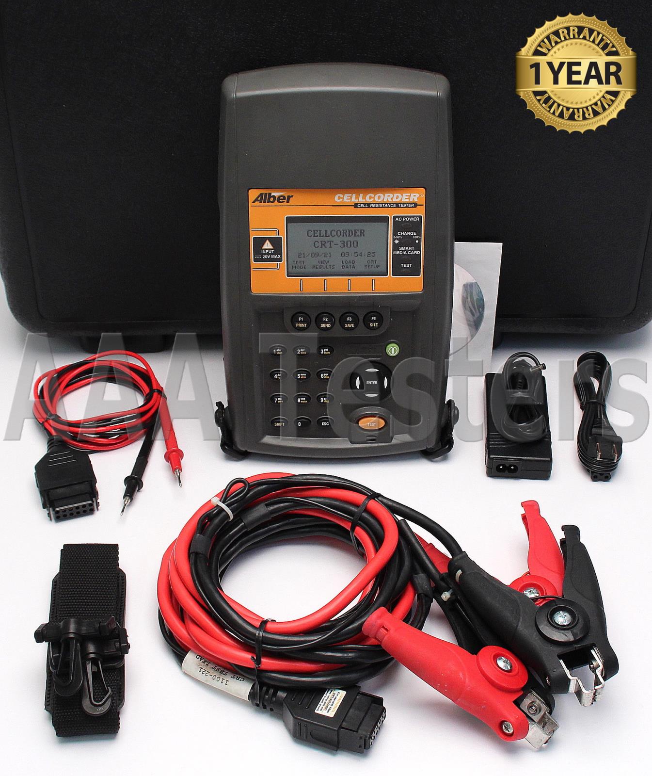 The Albér Cellcorder CRT-300 Cell Resistance Tester The Albér Cellcorder CRT-300 cell resistance tester displays and records cell float voltage, internal cell resistance and intercell connection resistance. The portable unit is lightweight, rugged and durable. Standard features include a memory card, backlit graphical reflective LCD display for better contrast and specially designed cables and clamps with interchangeable jaws for different battery post designs. A built-in infrared port provides wireless communications to printer, PDA, DMA-35N Hydrometer or laptop computer.