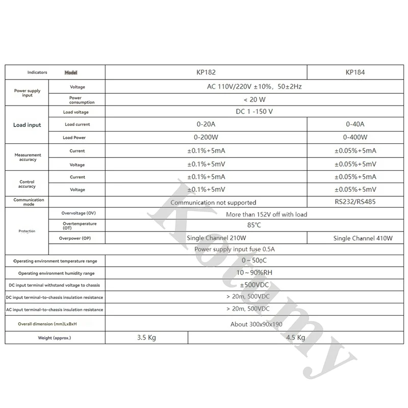 RS485, 232 communication interface, MODBUS protocol (only KP184);