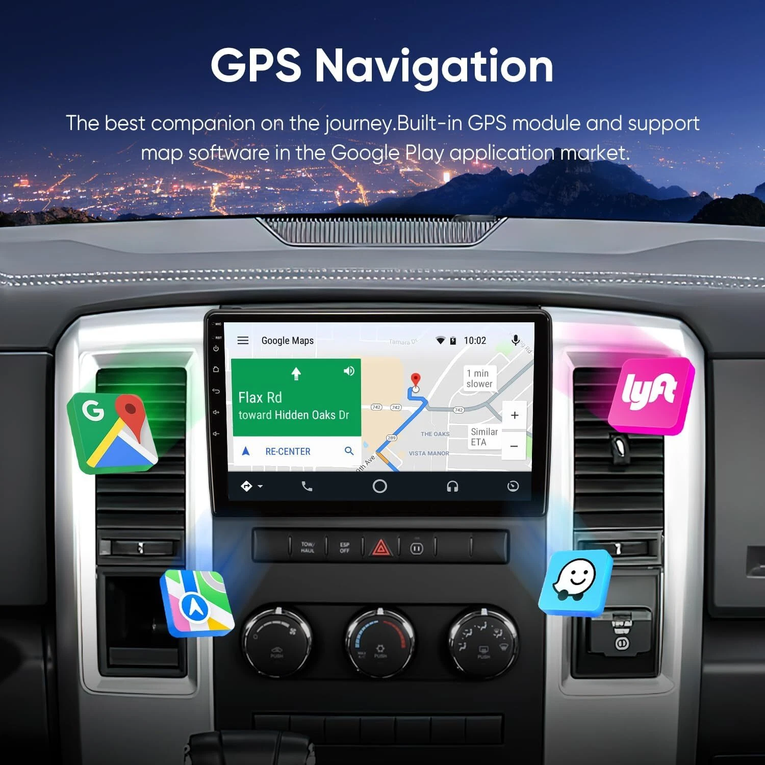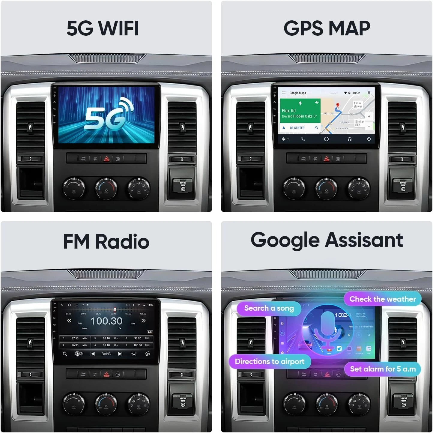 Features:Vehicle fitment: the car stereo radio is compatible for for Ram 2009-2012.Wireless & wired car-play: you can choose wired connection or wireless connection to car-play, connect to iOS mobile phone, access mobile phone address book, mail, notification, map navigation, music, video and other information, and realize voice control.Wireless & wired Android-auto: built-in wireless Android-auto car system can closely integrate the user's Android phone and player, and realize navigation, make calls, send and receive information, listen to music and other operations via data cable connection.Steering wheel control: through it you can control the functions you need via operating the steering wheel, which is more convenient.Built-in WIFI: connect to WIFI, you will find a new world, the most convenient is the online map. Built-in bluetooth hands-free and phone book to play music directly over the phone. (You need to agree to the phone authorization and contact information for syncing your phone settings) Built-in GPS navigation: you can purchase directly from play store for offline navigation. With wifi connected, Google Maps can be used perfectly, you can go anywhere you want and never get lost again.Support multilanguage: support languages, up to 40 national languages.Time setting: you can use the network or GPS to open the date and time automatically, or you can adjust it manually.Support external microphone.Note: Please check your car model before you shoot your order, calculate the year and model number and check the compatibility, or send us a complete image of the plugs on the back of the center console and on-board main unit(as the picture shown) to make sure it matches exactly and help you confirm if you need any other wiring harness or adapters.Specification:System: Android 15Chipset: 8227L-DEMOScreen size: 10inchMemory: 4GB (RAM)+64GB (ROM)Screen resolution: 1280x800Radio chip: MT6625Power output: 4s45WWork temperature:- 20℃-75℃Steering wheel control function: supportPower amplifier chip: TDA7388Radio band: Frequency modulation/RDSVideo output: supportReversing input: CVBSExternal microphone: supportSplit screen: supportMaps: built-in offline maps(requires internet to download data)WIFI: supportUSB: Double USB interfaceAudio format: APE/FLAC/WAV/MP3/WMA etcVideo format: MKV/RMVB/AVI/MP4/MDV etcPicture format: PNG/JPEG/JPG/GIF/WBMP/BNP etcFactory setting keyword: 8888 or 3368Language: Chinese/English/French/Italian/Korean/Japanese/Arabic/Spanish/Portuguese/Russian/Turkish/Vietnamese/Hebrew/Polish/GermanFitment:Compatible for Ram 2009-2012Package includes: