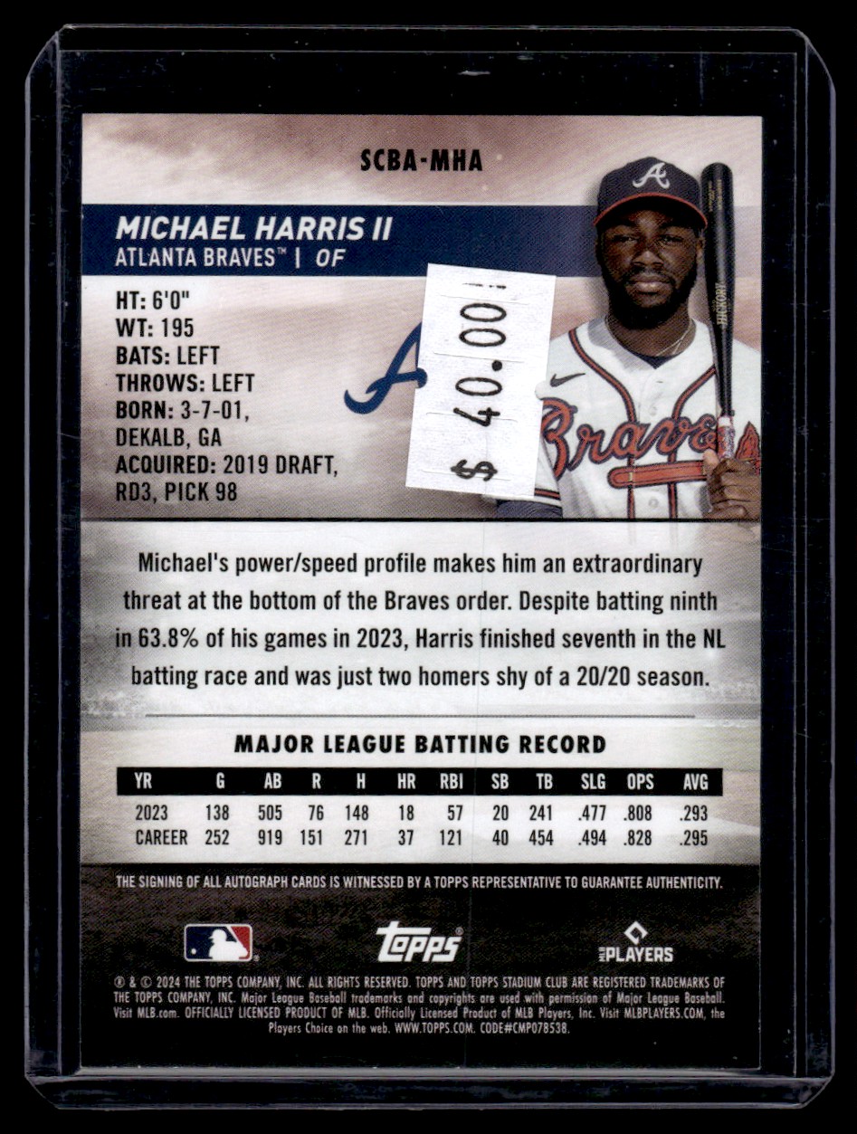 2024 Stadium Club Autographs Michael Harris II Auto Base Atlanta Braves