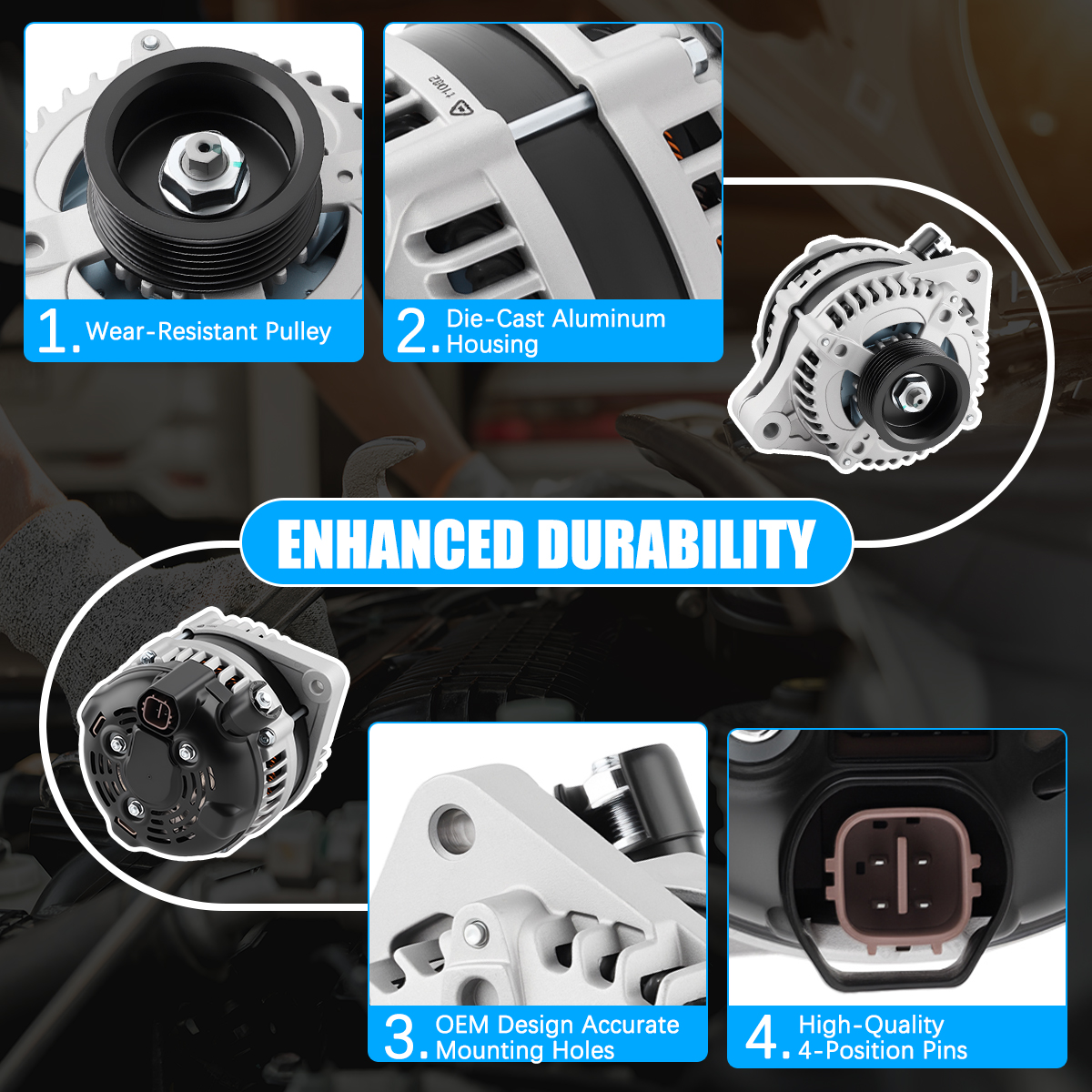 This automotive alternator provides high efficiency and reliability, ensuring stable power supply for your vehicle. It utilizes modern design and manufacturing technologies to deliver excellent performance and provide reliable power for various electrical equipment and charging systems.