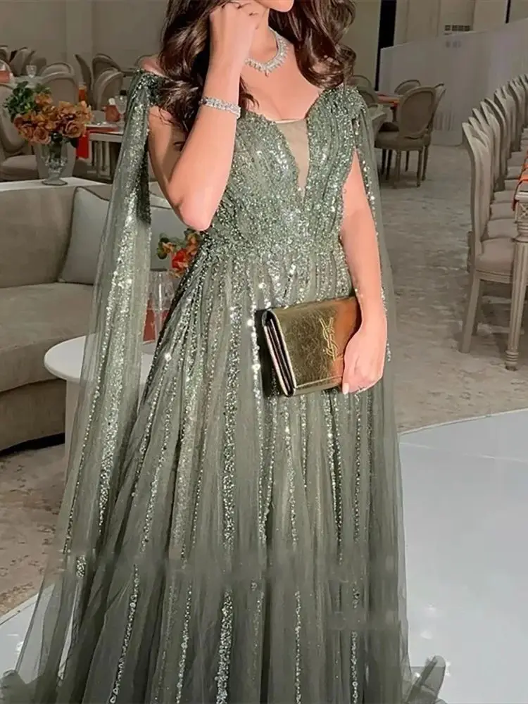 V-Neck Sequined Pleat Sleeveless A-Line Formal Evening Dresses Birthday Party