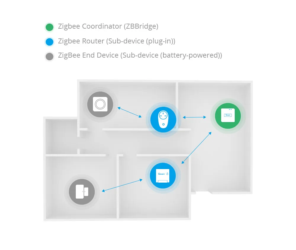 S26R2ZB can work as a ZigBee router to transmit the signal among devices. Do not need to worry about the off-line issue caused by long distance.