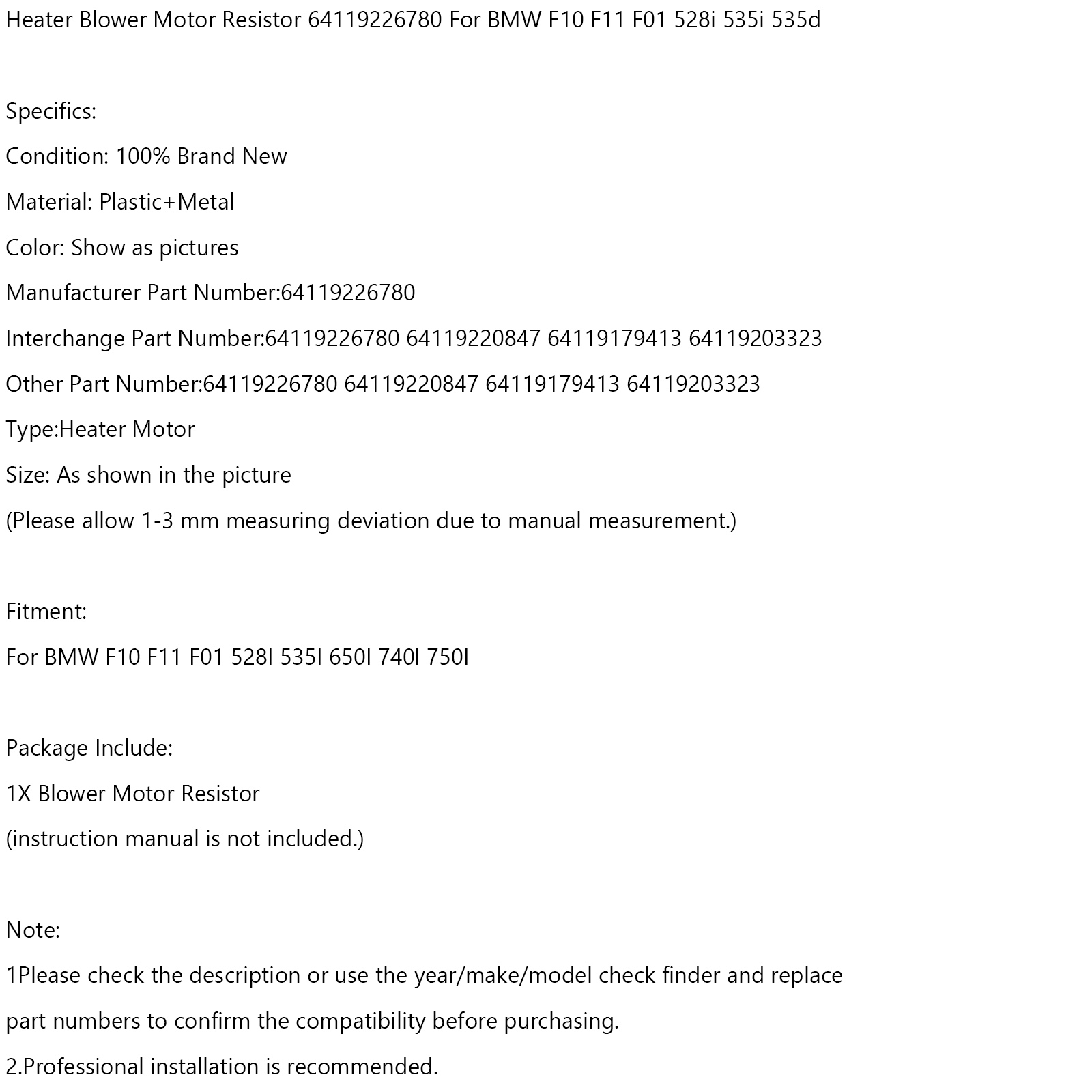 Heater Blower Motor Resistor 64119226780 For BMW F10 F11 F01 528i 535i 535d