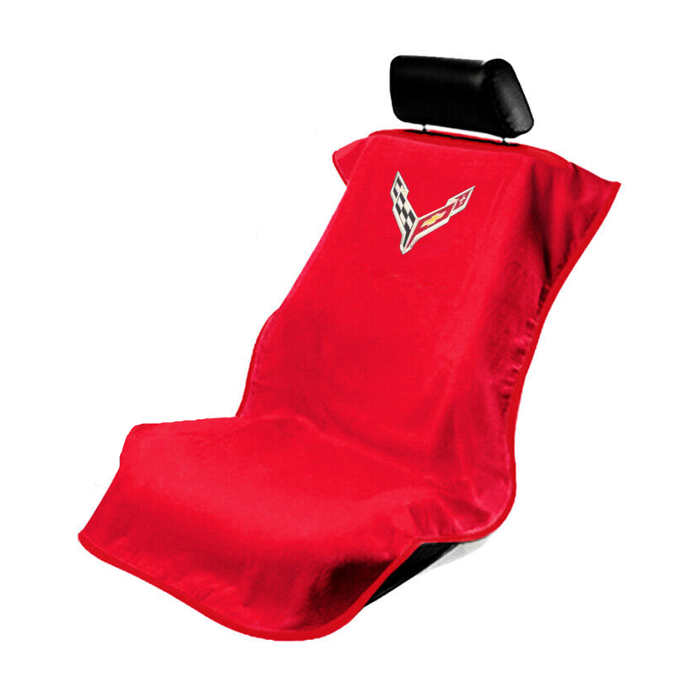 Seat Armour Red Terry Cloth Seat Cover w/Corvette C8 Logo - SAR147R