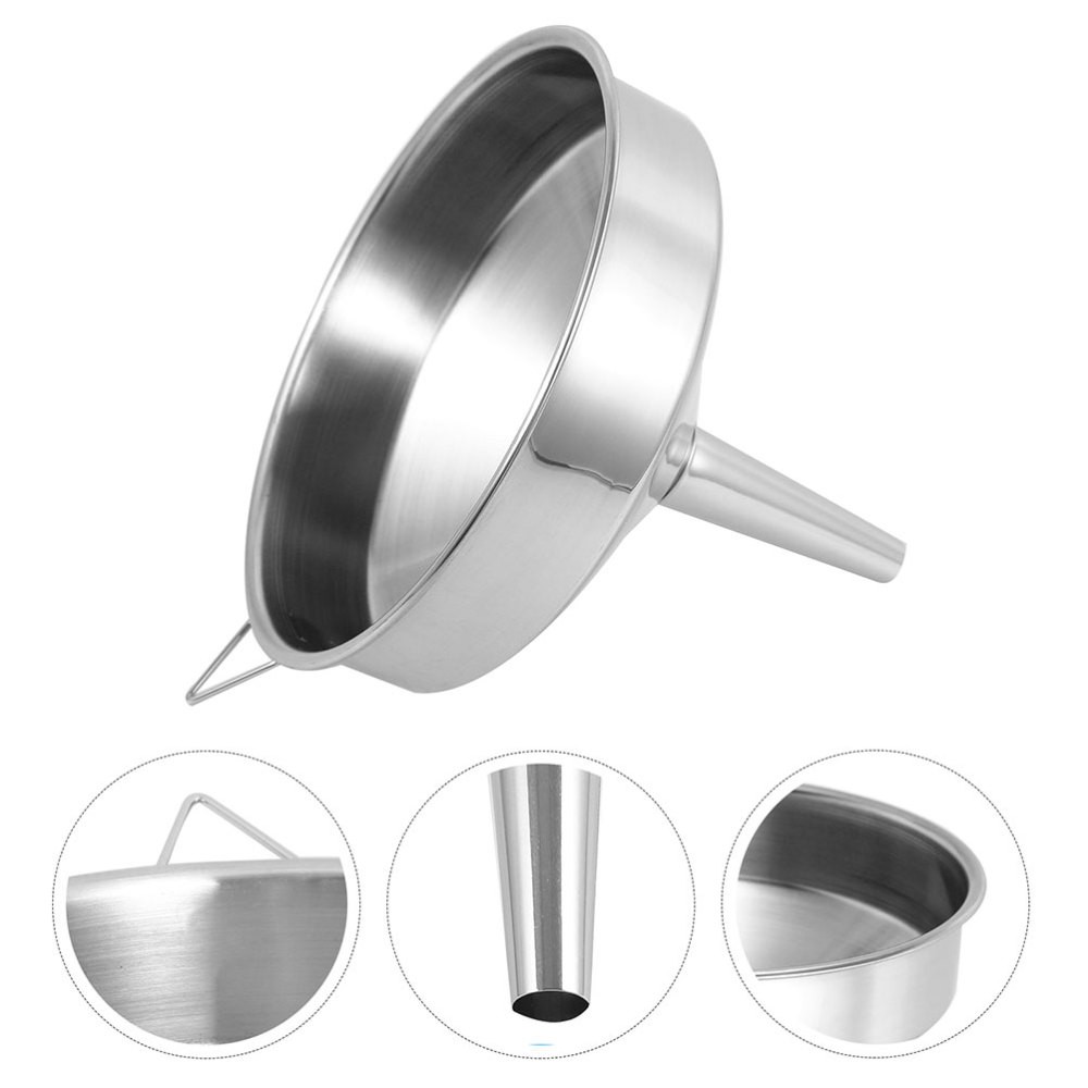 DescriptionMade of premium durable stainless steel funnels. This kind of funnel is a must-have tool in daily life for transferring liquid, dry ingredients and powder. These funnels are constructed of heavy-duty stainless steel, for fitting small bottles and containers. Very easy to clean and dishwasher safe. Highly resistant to rusting, scratching, breaking or bending