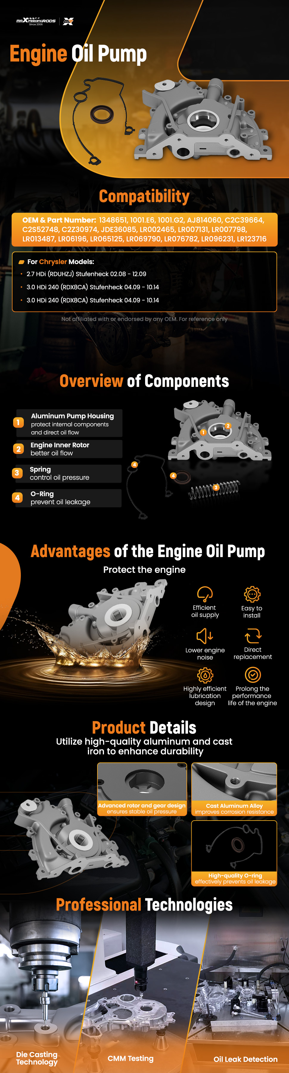 1. Efficient oil supply: The advanced gear and rotor design ensures a stable oil pressure rise, ensuring adequate lubrication of the engine components and extending the engine's service life.