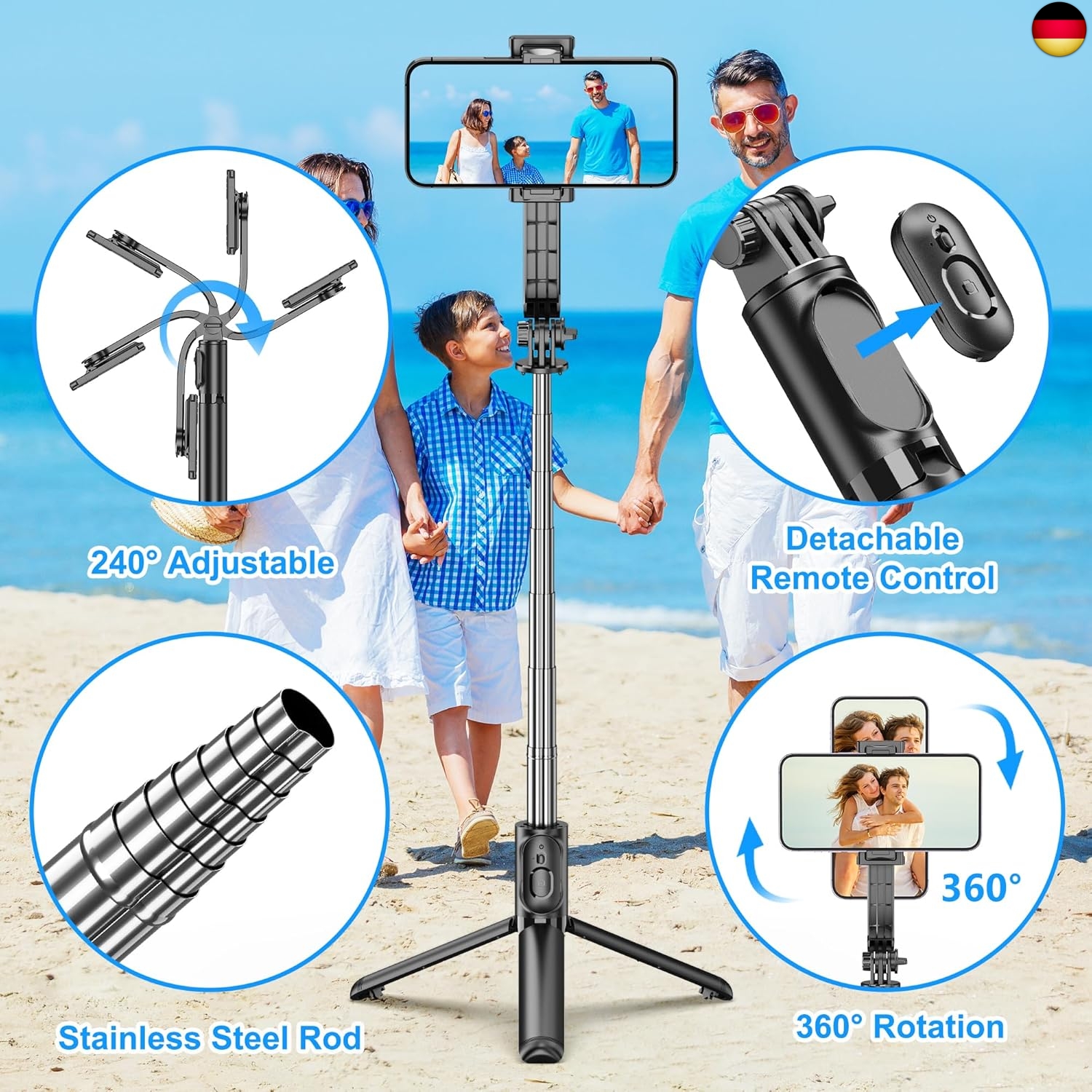 | + INFO | Stick mit 360°Kugelkopf und Fernauslöser, Aluminium Camera Trip |