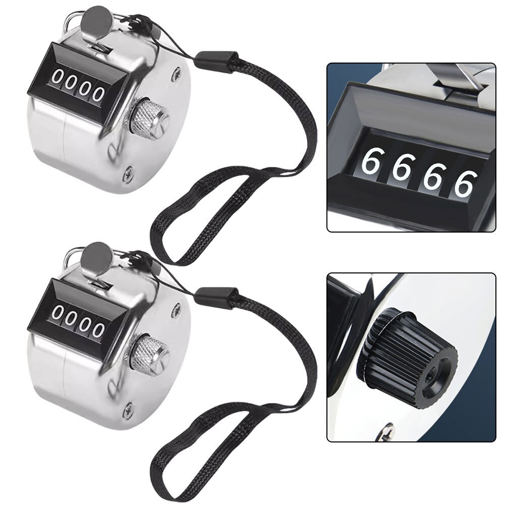 Handheld Manual Click Counter 2pcs Metal 4 Digit Tally for Counting Activities