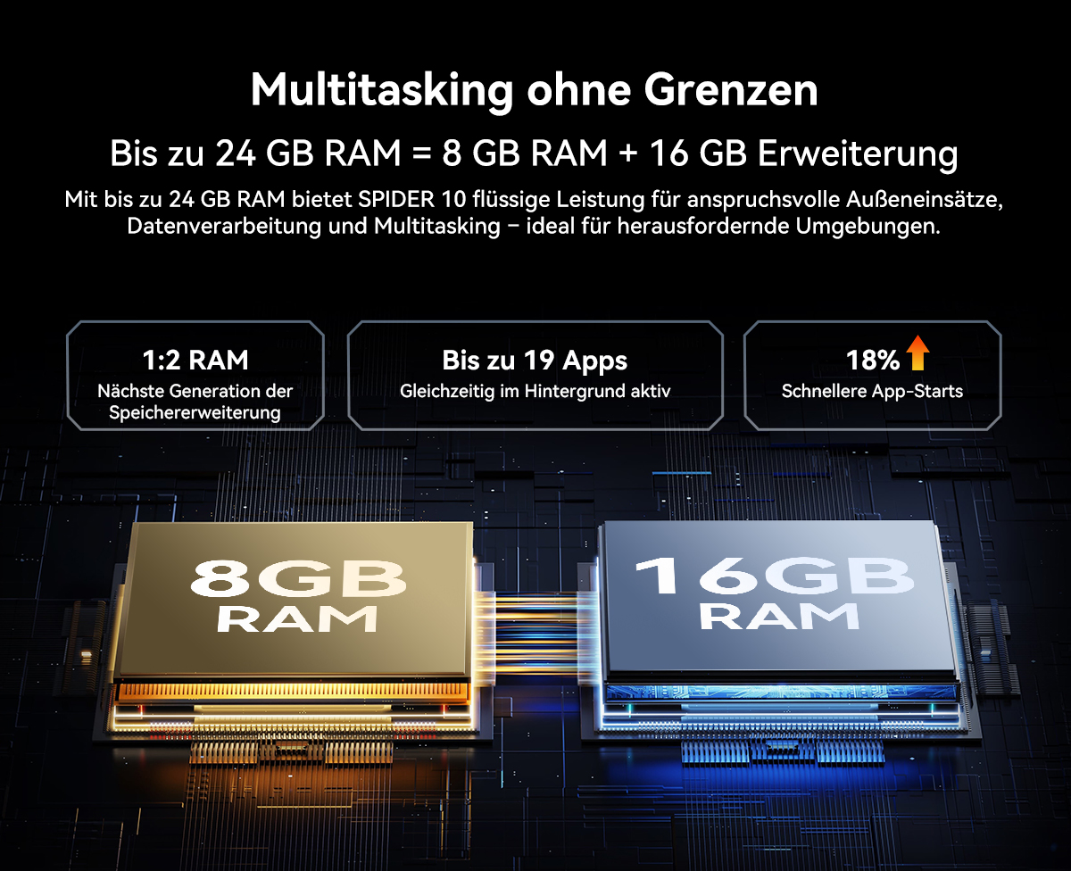 RAM --------- 8GB RAM + bis zu 16GB Erweiterung ↑ 25 % RAM Schneller