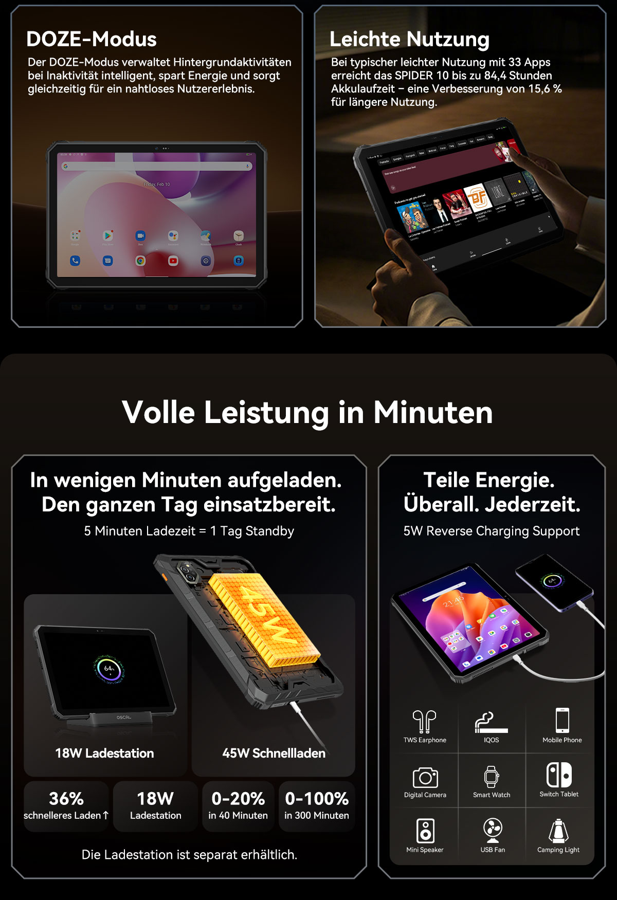 Batterie ---------- 20000mAh,45W Schnellladung