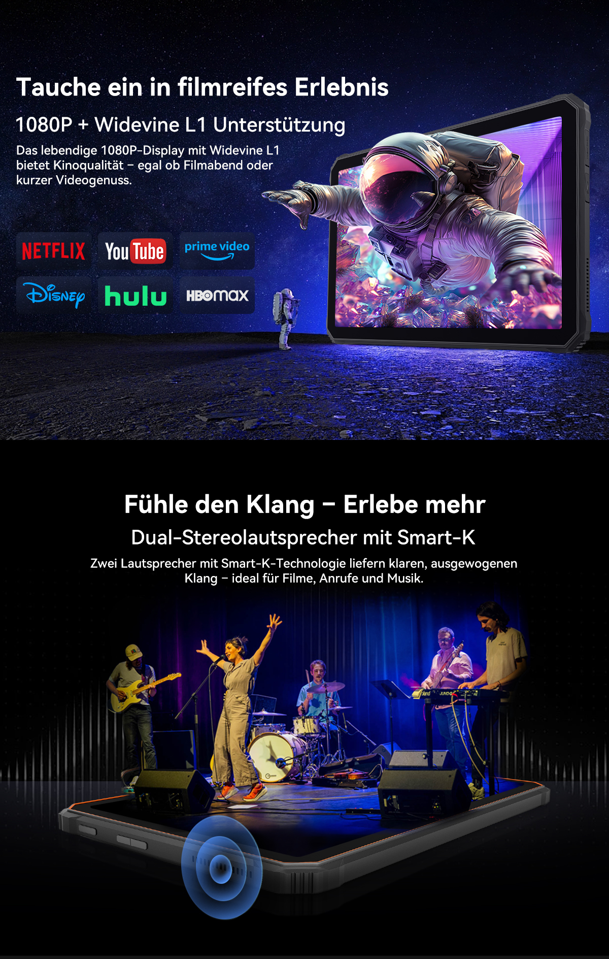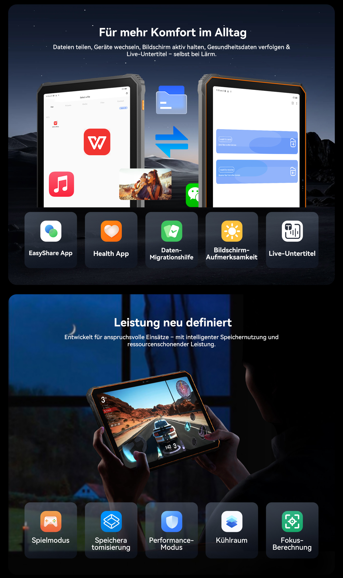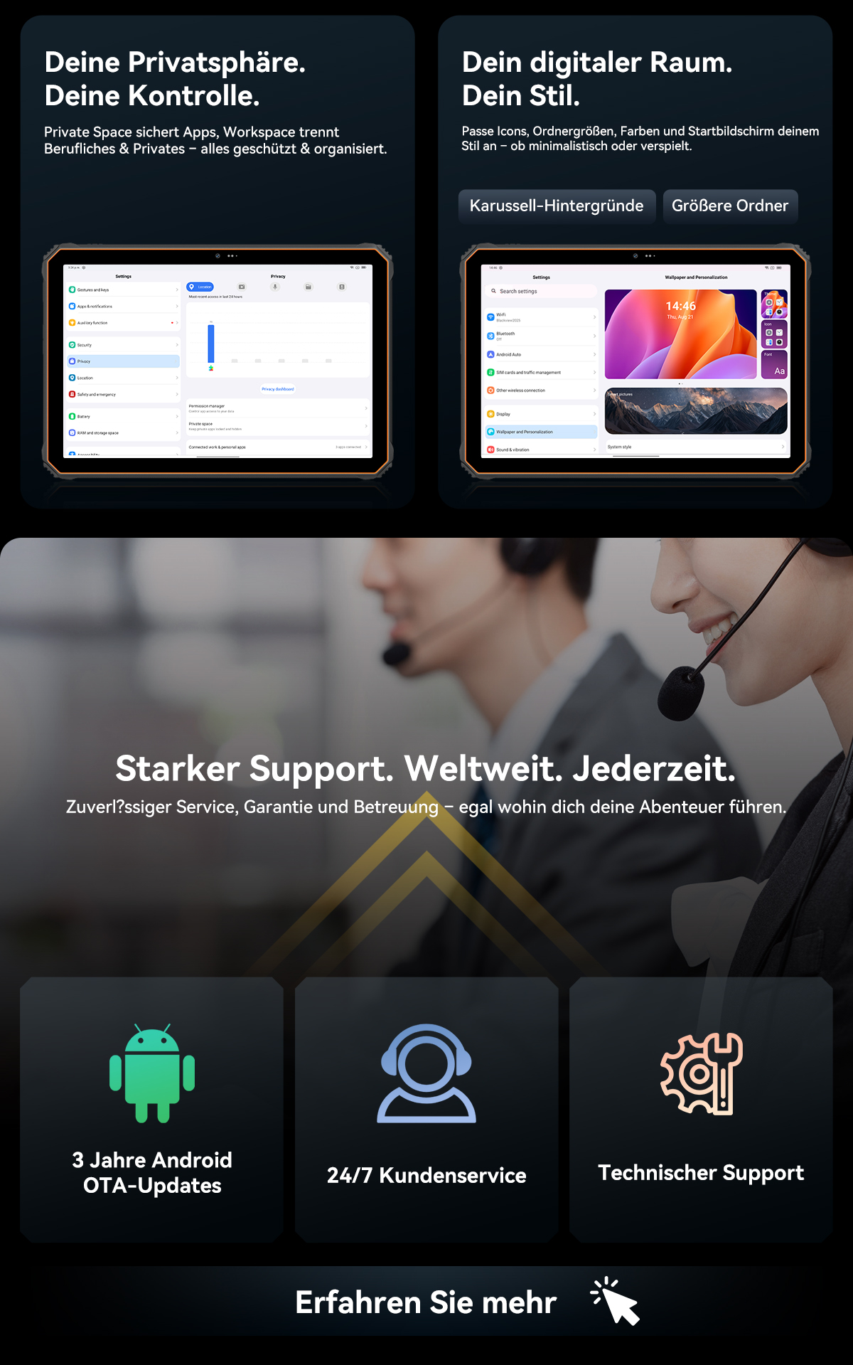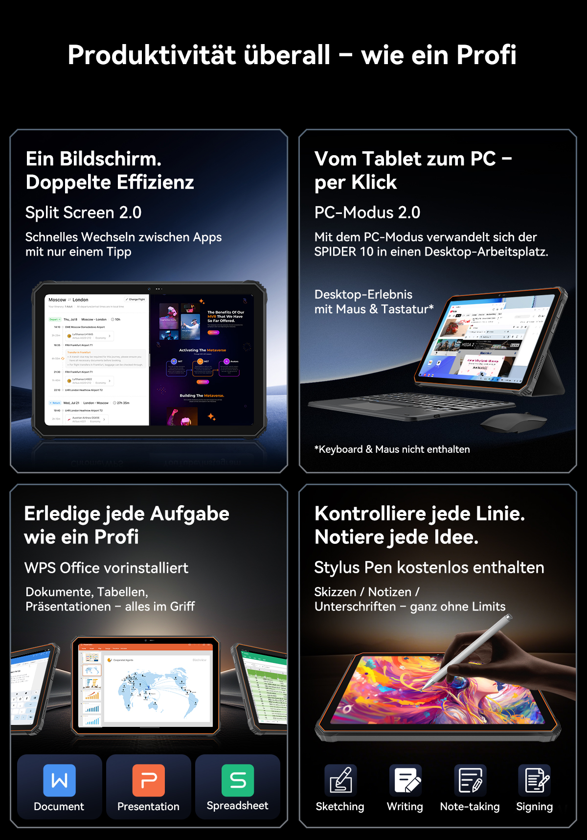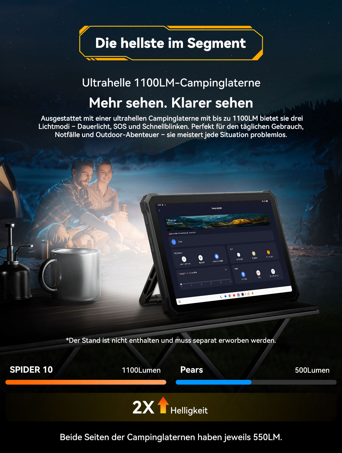 Aufgrund der robusten Leistung des Tablets und der großen Akkukapazität ist dieses Tablet etwas schwer.
