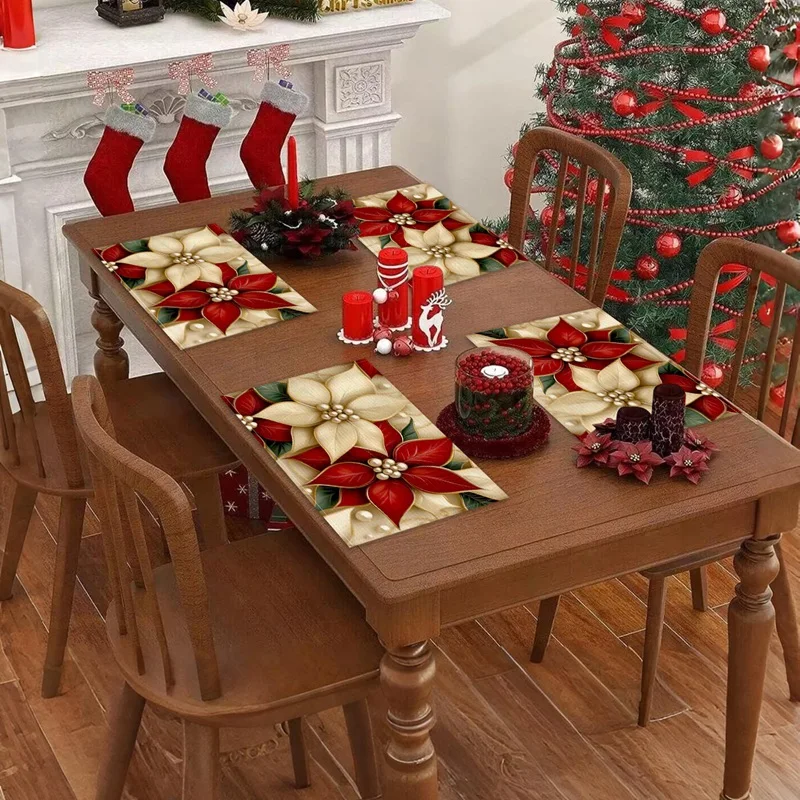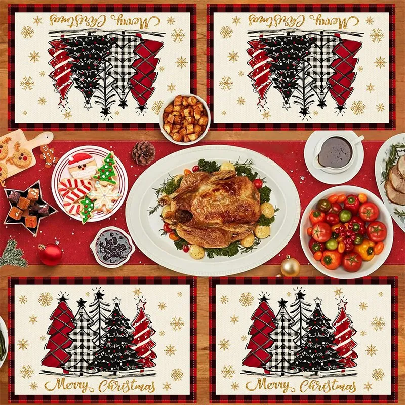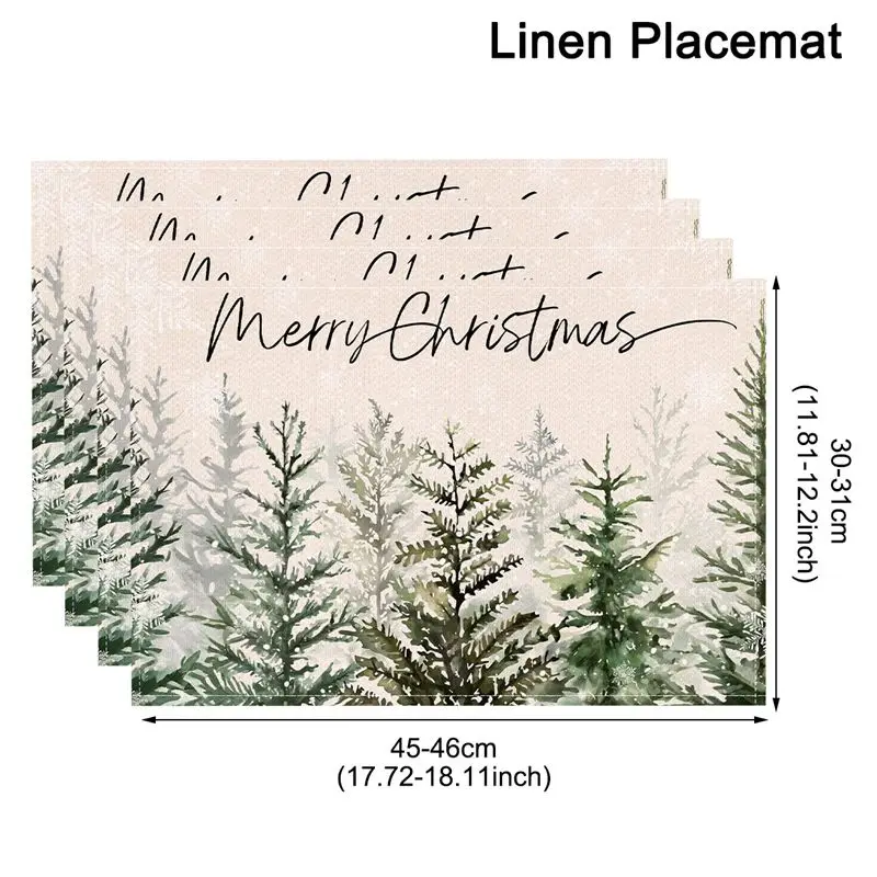 Linen Christmas Tree Placemat Table Mat - Kitchen Dining Area Holiday Decoration