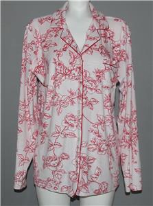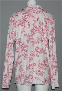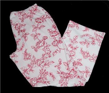 Laura Ashley Floral Rose Toile Luxuriously SOFT 2-Pc Pajamas. Pants have an elastic waist. Top is a traditional button-up with notched rounded lapel collar and left breast pocket. Background is dusty pink. This may be the softest and most comfortale pajamas you will ever have! Machine wash, 90% polyester, 10% spandex. Women's sizes.