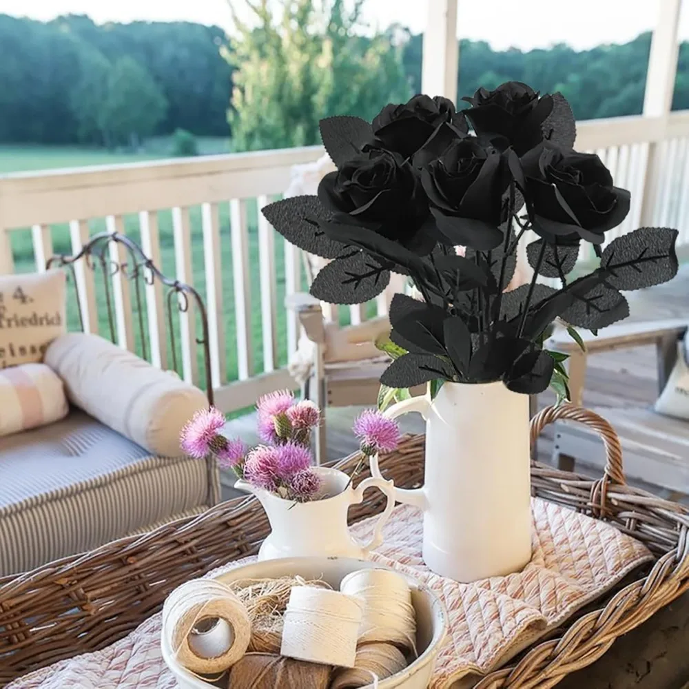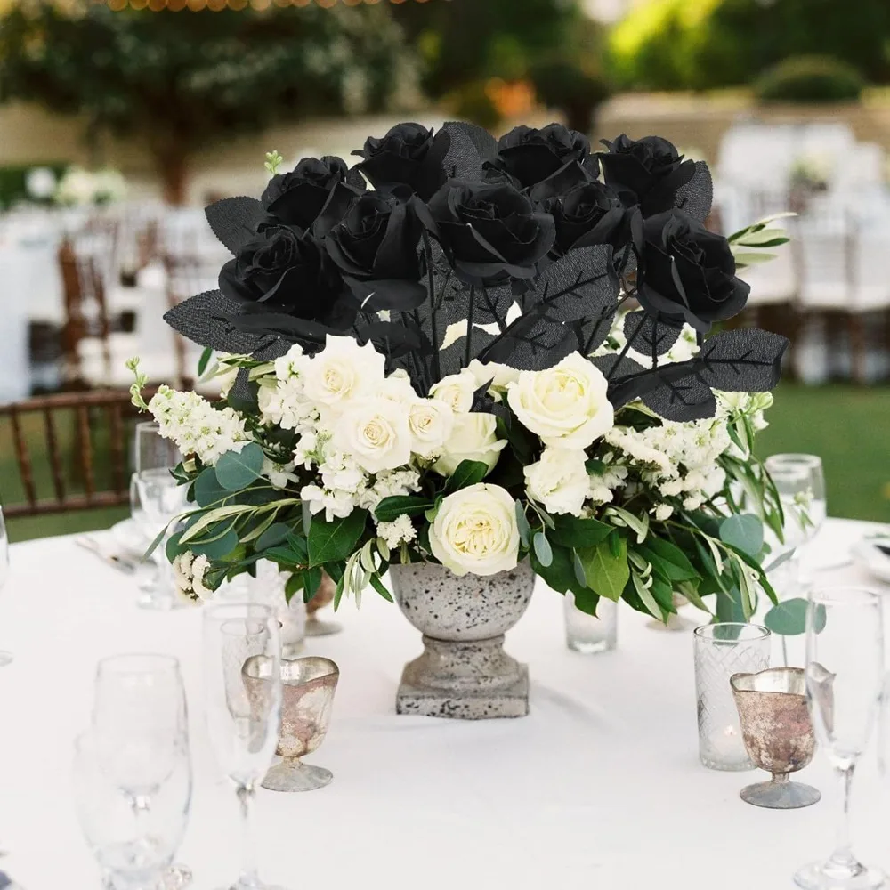 48cm Rose Black Silk Bouquet Peony Artificial Flower for Mother's Day Bud Bride Wedding Decor Home Decoration Artificial Flower