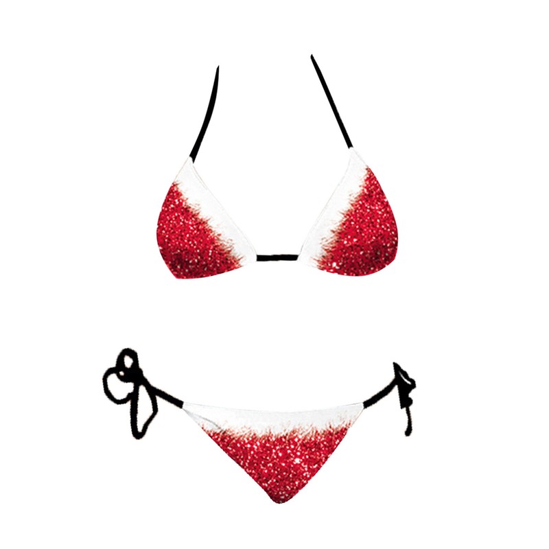 Women Christmas Halter Neck Straps Vivid Printings Bras and Briefs Swimwear.