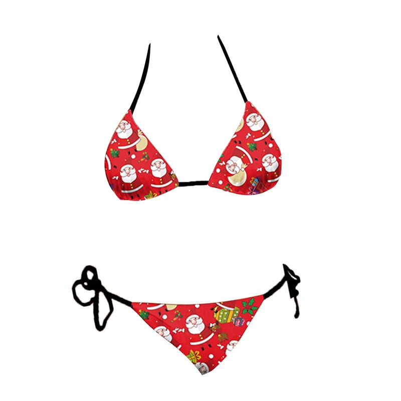 Bikini set with vivid Christmas related printings, makes you hot and charming.
