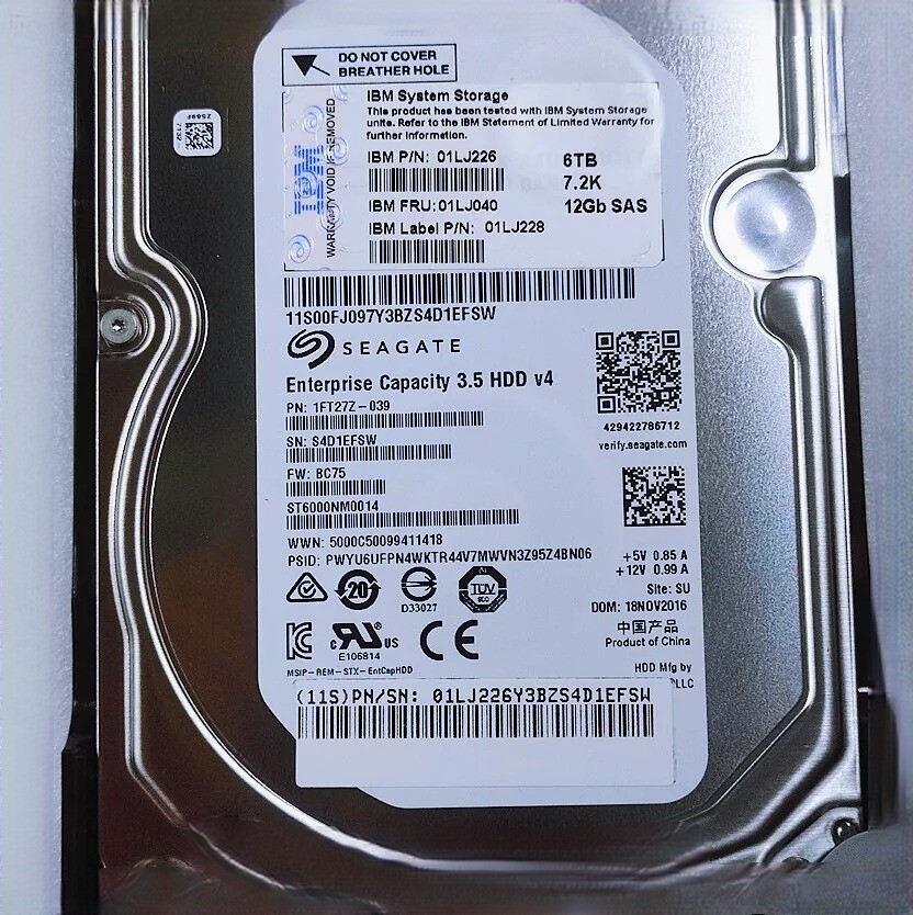 IBM 6TB 01LJ226 01LJ040 01LJ228 7.2K SAS 12G 4Kn 3.5" V5000 Hard Drive HDD NEW