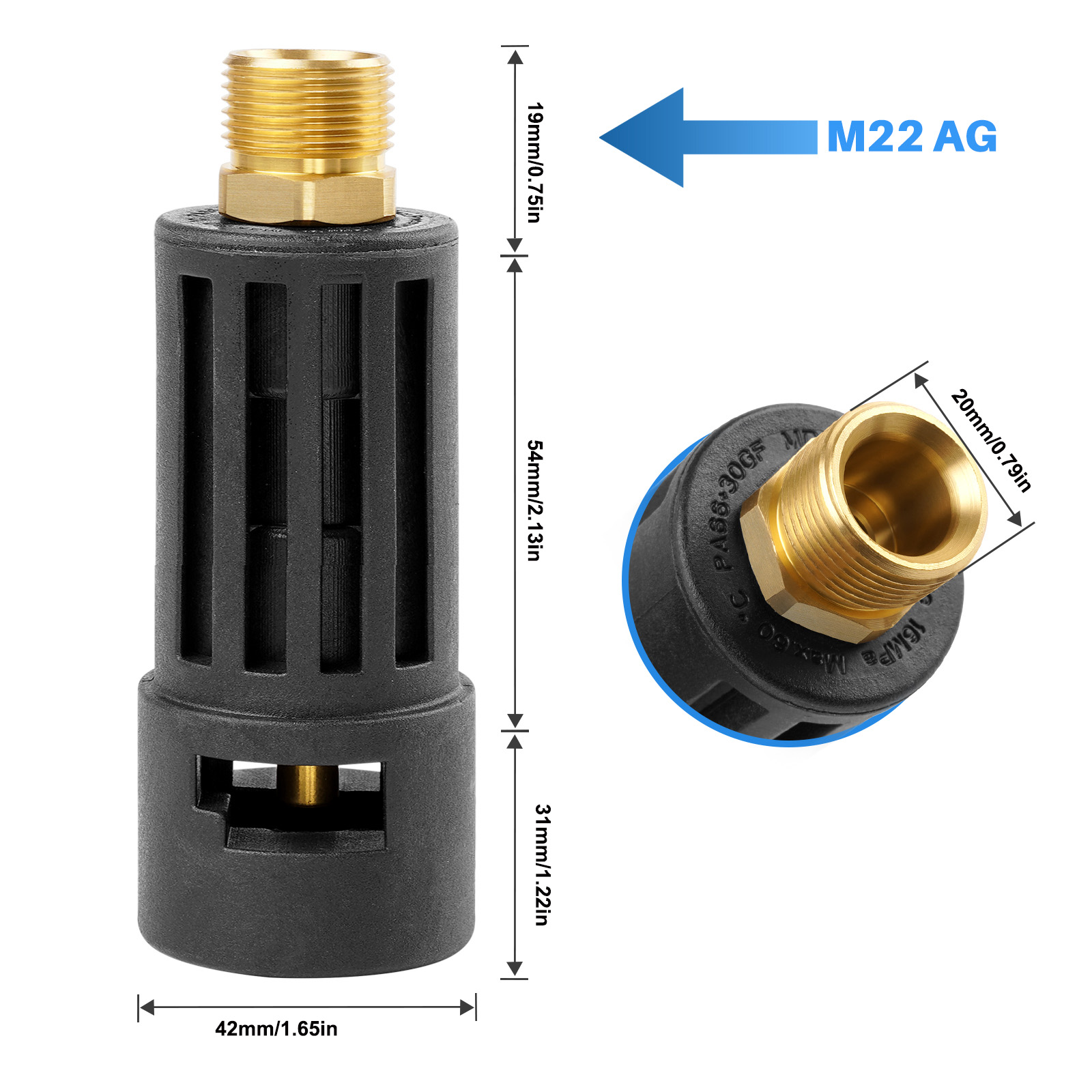 • It has an M22 x 1.5 AG: bayonet thread