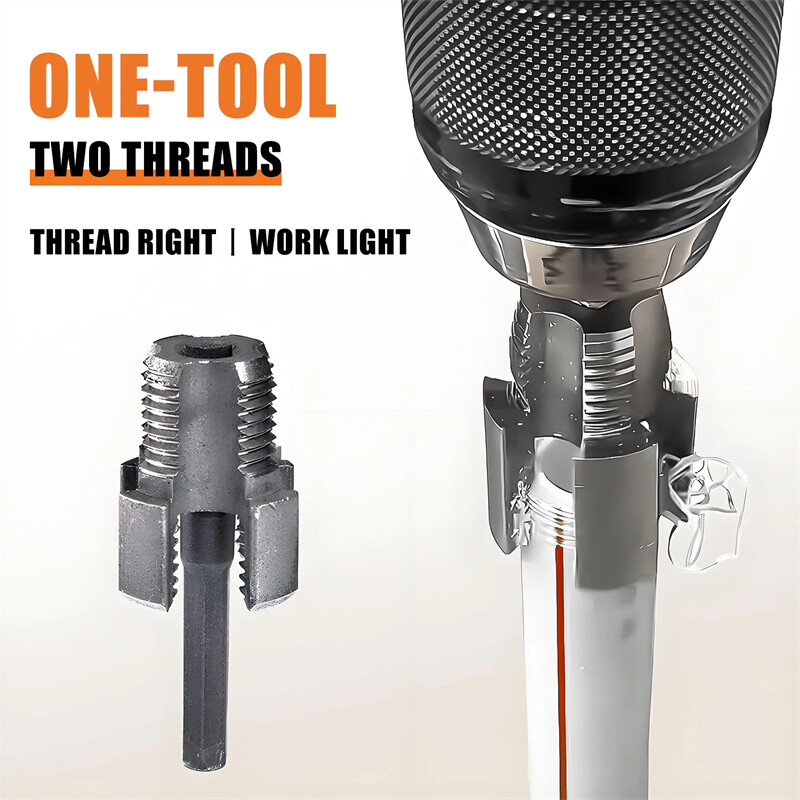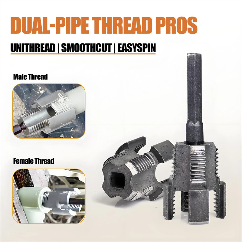 1. Dual function thread machining: Use one tool to machine internal and external threads without switching. Choose the size that suits your job: 1/2 "or 3/4". Very suitable for fast and accurate pipeline pretreatment 2. Accurate and efficient cutting: using a clockwise cutting action, specifically designed for cleaning or re tightening damaged or blocked pipe threads, ensuring smooth and accurate operation, and making it worry free and effortless to use 3. Universal pipe compatibility: It can seamlessly match with PPR, PVC, plastic, and MPP pipes, making it an ideal choice for hot and cold water pipe maintenance, DIY upgrades, and conduit installation 4. Heavy alloy manufacturing: Made of high hardness 40Cr alloy steel, it has long-lasting sharpness, high concentricity, and stable threads that will not slip or deviate 5. Clean and leak free effect: Sharp cutting edges produce precise threads, tightly fitting - reducing leaks, improving fluidity, and saving rework time