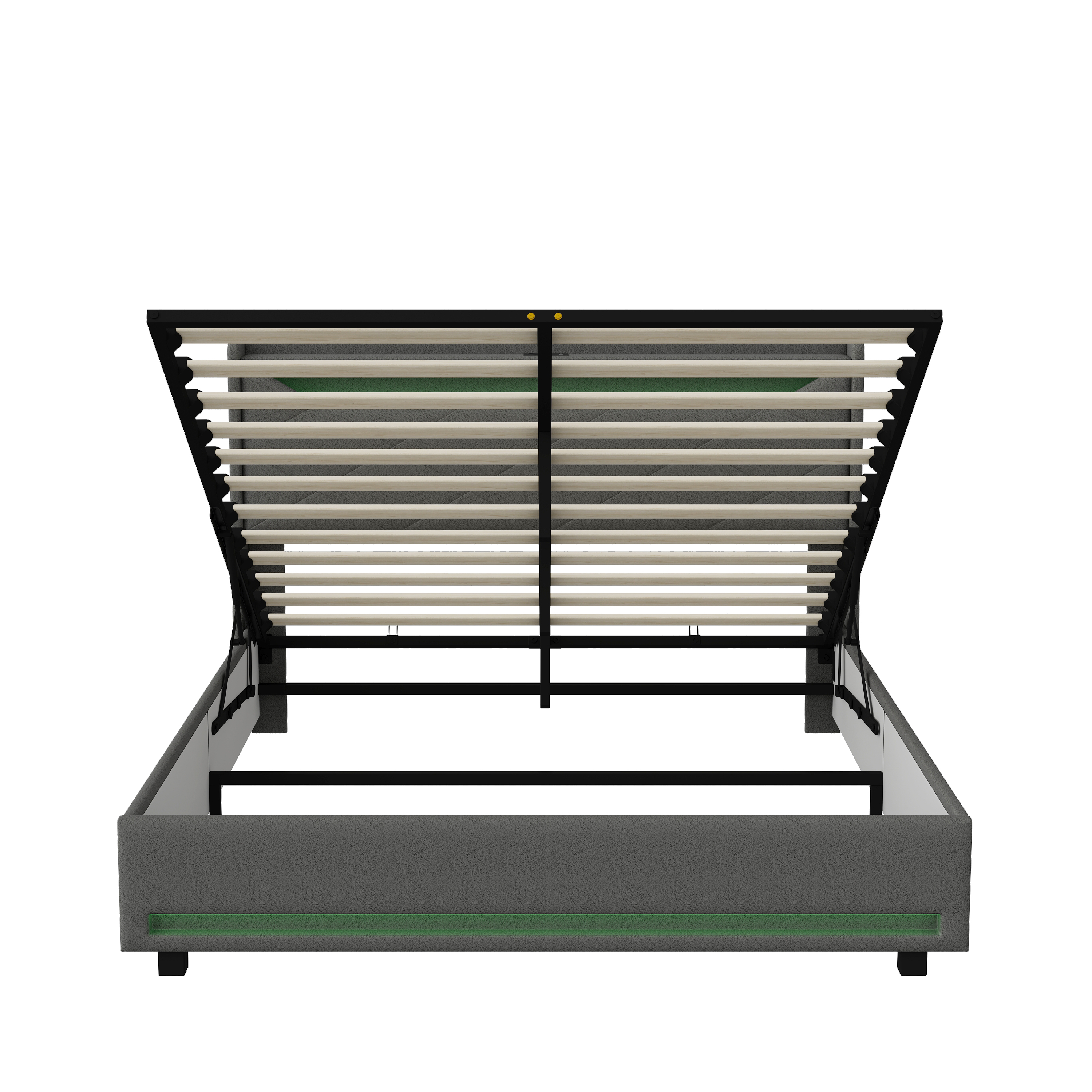 Dieses 140x200 cm große Bett aus grauem Leinen vereint Ästhetik und Funktionalität perfekt. Die LED-Lichtstreifen an Kopf- und Fußteil sorgen für eine sanfte Beleuchtung des Schlafzimmers und schaffen eine warme, angenehme Atmosphäre, sodass Sie in der Nacht beim Aufstehen nicht im Dunkeln nach dem Schalter suchen müssen. Der USB-Ladeanschluss am Kopfteil ermöglicht es Ihnen, Ihre elektronischen Geräte bequem aufzuladen, sodass Sie jederzeit mit Strom versorgt sind. Die Gasdruckfederfunktion macht die Nutzung des Stauraums unter dem Bett kinderleicht, sodass Decken, Kleidung und andere Gegenstände problemlos verstaut werden können. Das graue Leinenmaterial hat eine hochwertige Haptik und lässt sich perfekt in jedes Schlafzimmerdesign integrieren, was Ihrem Raum einen Hauch von Stil und Eleganz verleiht.