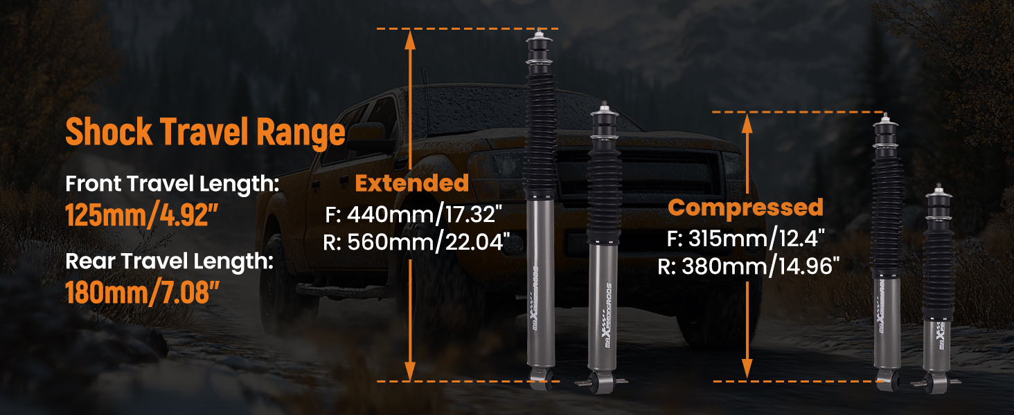Extended length: F: 440mm/17.32" R: 560mm/22.04"