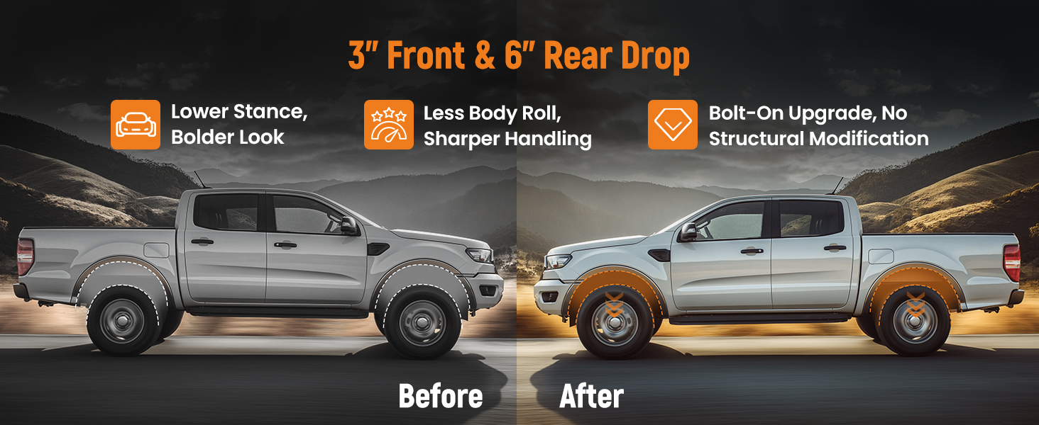 Compatible drop height: Front 3" Rear 6"