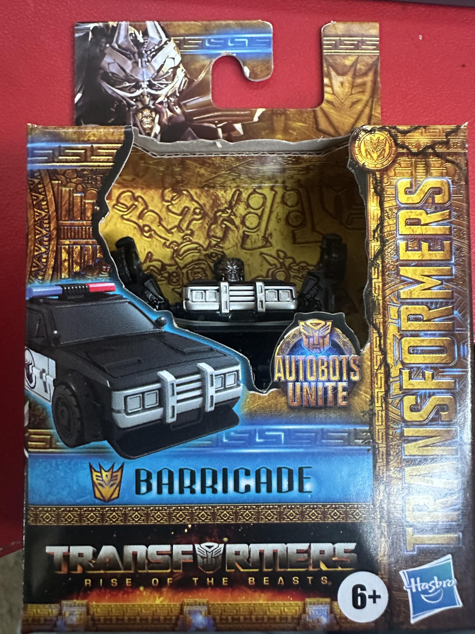 Step into the world of Transformers: Rise of the Beasts with Barricade, a compact 3-inch action figure that packs a punch. This Autobots Unite Speed Series figure transforms from a sleek black-and-white police car into an articulated robot, featuring the iconic Decepticon insignia. CUP displacement? Light at just 16gbut it delivers heavy collectible appeal.