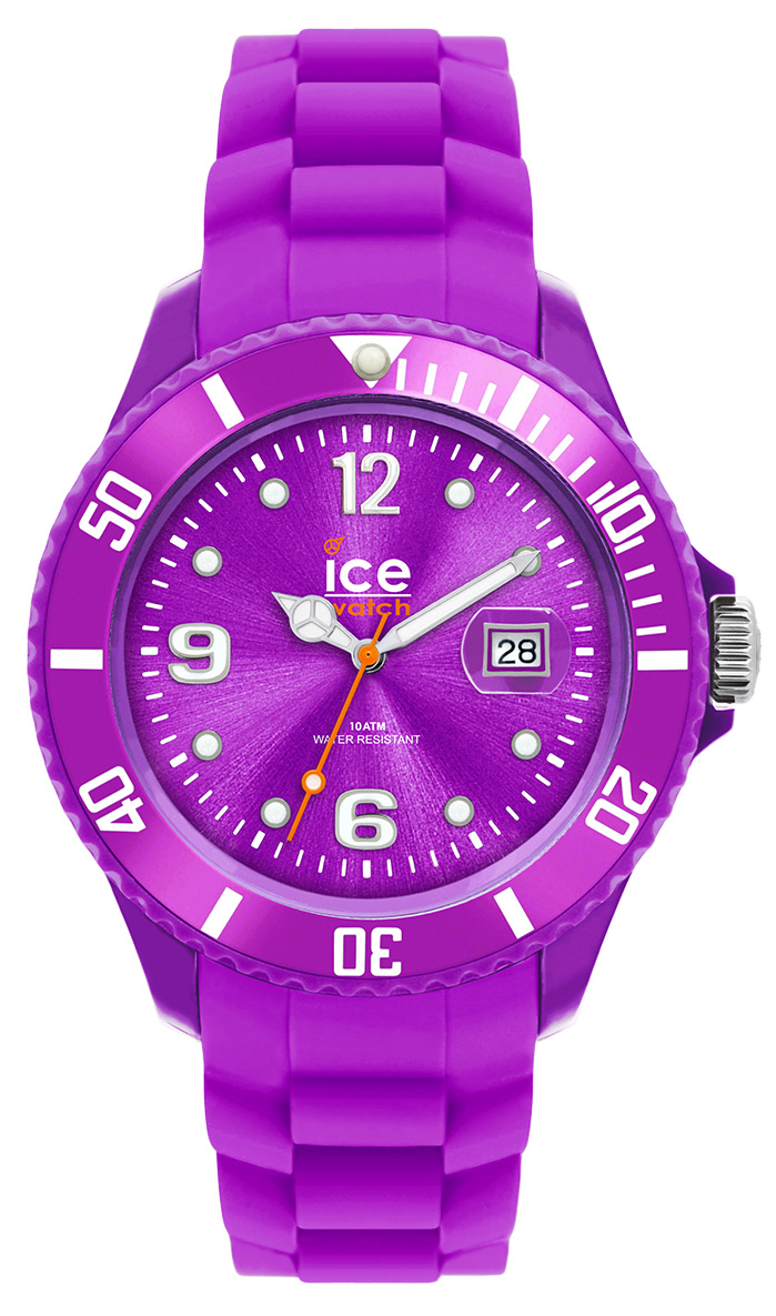 Ice-Watch Ice-Forever Sili Collection Purple Unisex Fashion watch Model# SI.PE.U.S.09 / SI PE U S 09. These watches are the latest must have fashion accessories available. The SI-PE-U-S-09 watch features a purple polyamide case, purple silicone strap, Uni-directional rotating bezel, purple dial, silver tone & luminous hand indicators, silver tone & luminous Arabic Numeral & dot hour markers, magnified date display at the 3 o'clock position, Scratch Resistant Mineral Crystal, Miyota 2115 Quartz movement, Water resistant to 5 ATM/50 meters/165 feet.