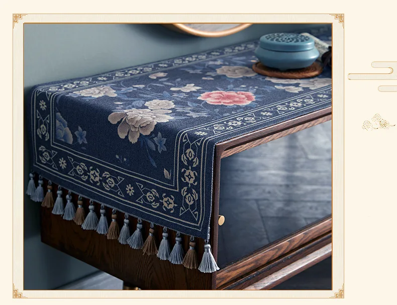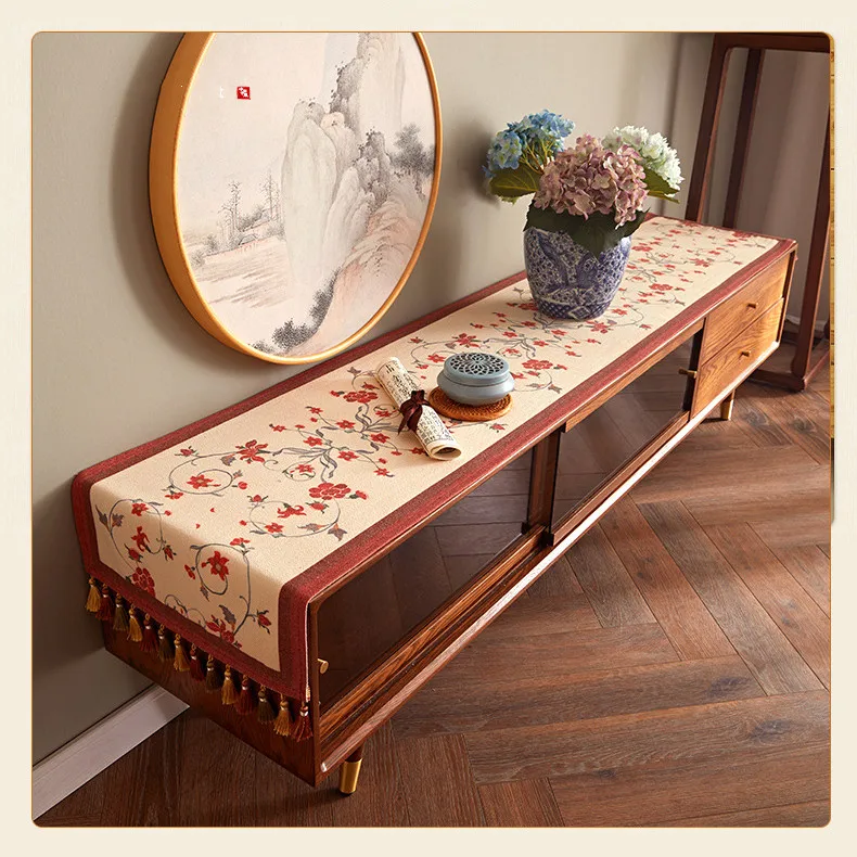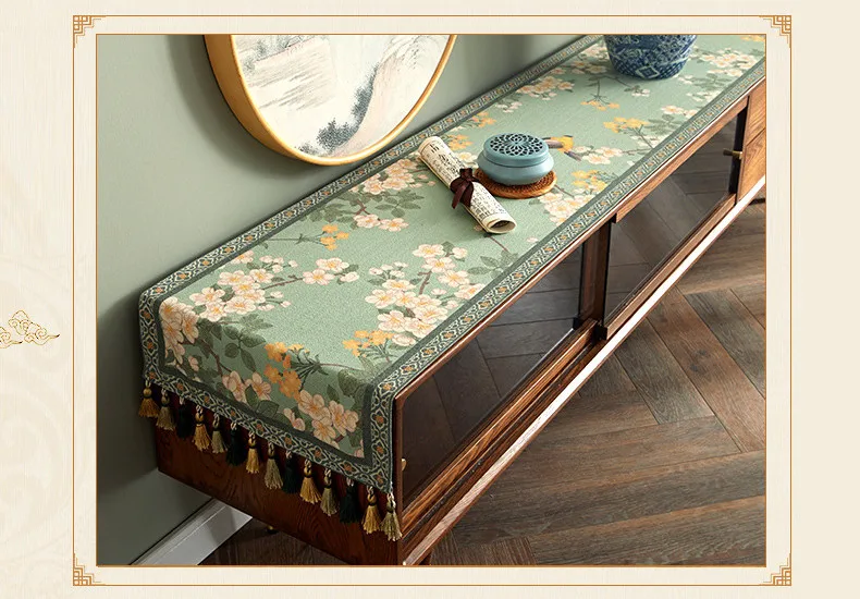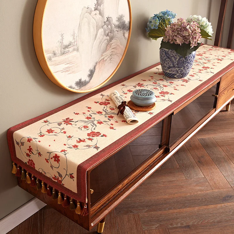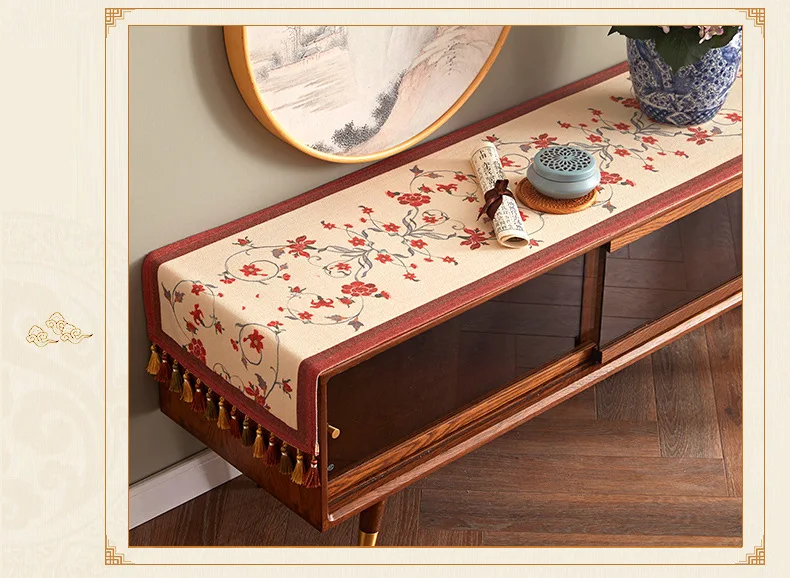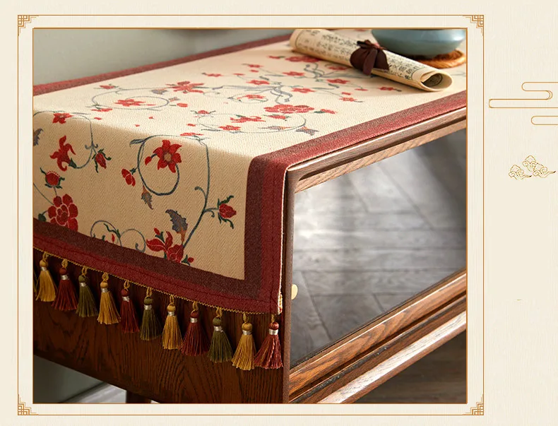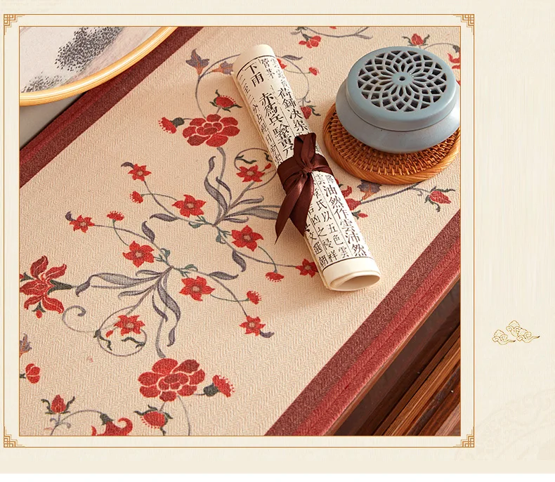 Lace table runner for love continue, in food and flowers against the background, warm and