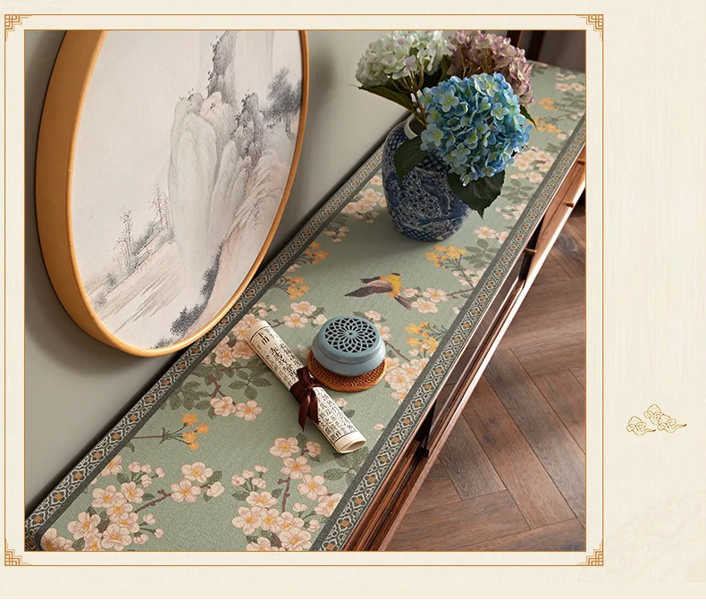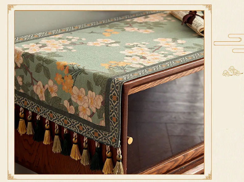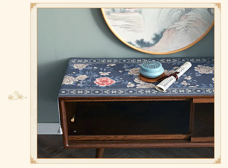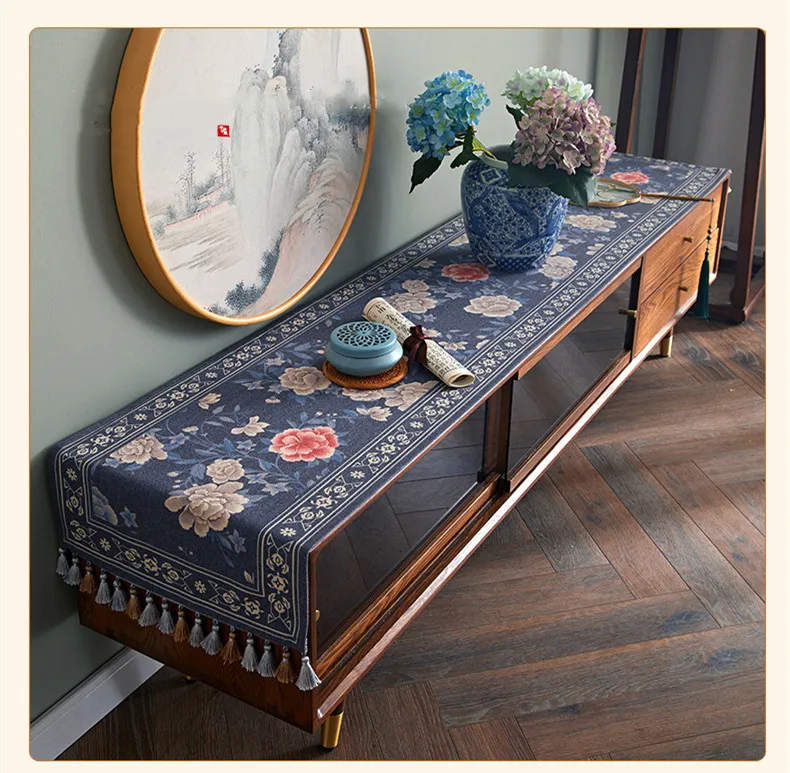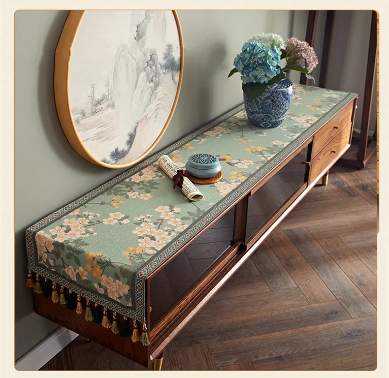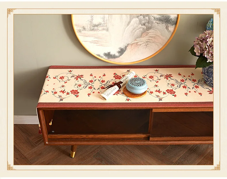 Lace table runner for love continue, in food and flowers against the background, warm and