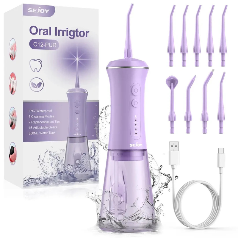 The 350ML detachable water tank provides ample capacity for uninterrupted flossing sessions, while the IPX7 waterproof build ensures safety and easy maintenance. Compact and rechargeable, it’s perfect for both home use and travel.