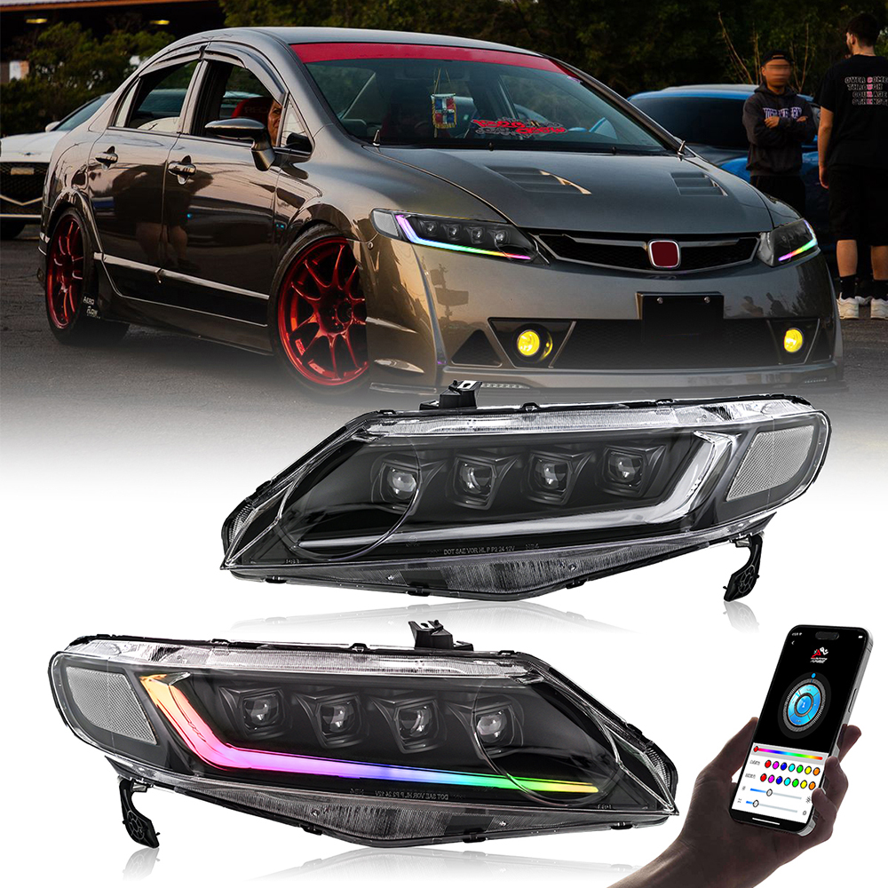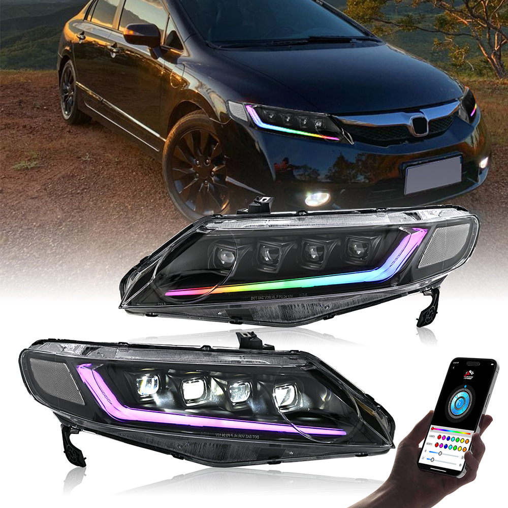 RGB Color LED Projector Headlight For Honda Civic Sedan 2006-2011 Head Lamp DRL