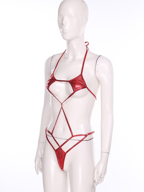 Women's One-piece Monokini Swimwear Lace-up Metallic Shiny Bodysuit Nightwear
