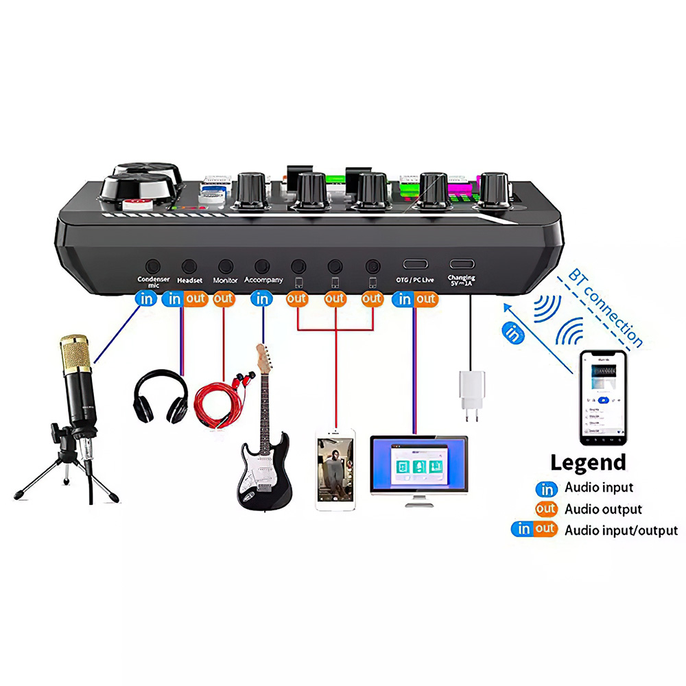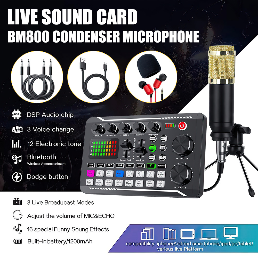 This podcast equipment bundle is perfect for anyone looking to start their own studio recording sessions. The kit includes a high-quality condenser microphone, audio mixer, and all the necessary accessories needed for a professional-sounding recording. The black colour adds a touch of sophistication to the overall look of the setup, making it suitable for any studio environment. The condenser microphone is specifically designed for studio recording and is ideal for capturing clear and precise audio. The audio mixer allows for easy adjustment of sound levels and is perfect for mixing multiple audio sources. This podcast equipment bundle is perfect for musicians, podcasters, and anyone else looking to create high-quality audio recordings. Use for podcast, multi function board, dj, YouTube video