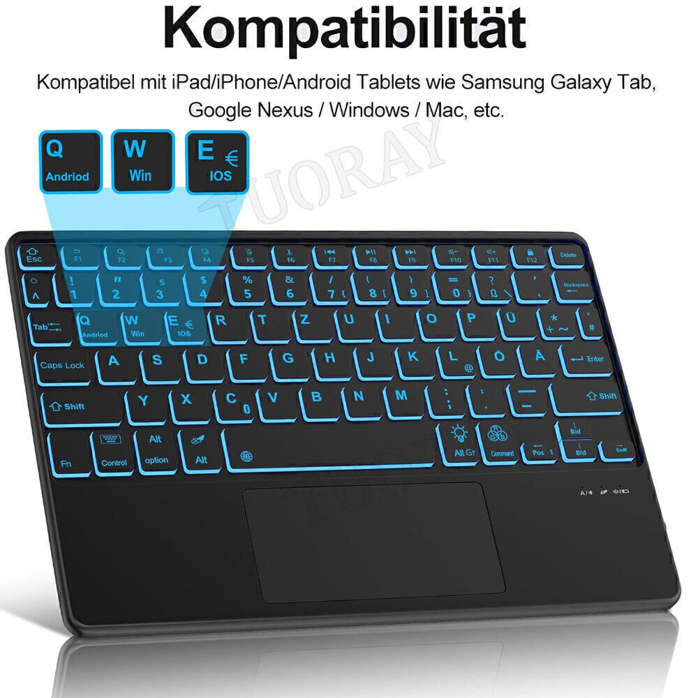 Beleuchtete Touchpad Tastatur Funk Maus Wireless Keyboard PC iPad Layout QWERTZ