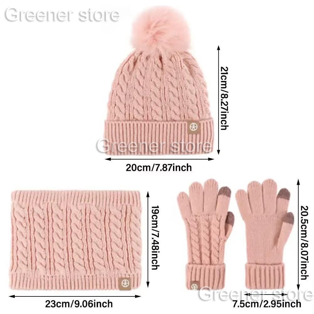 Materials: This knit beanie hat gloves scarf set is made of high quality fabric and skin-care material -100% Acrylic, meet the standards for making suitable skin products for kids, touches soft & comfort, skin-friendly and keeps warm in cold weathers.