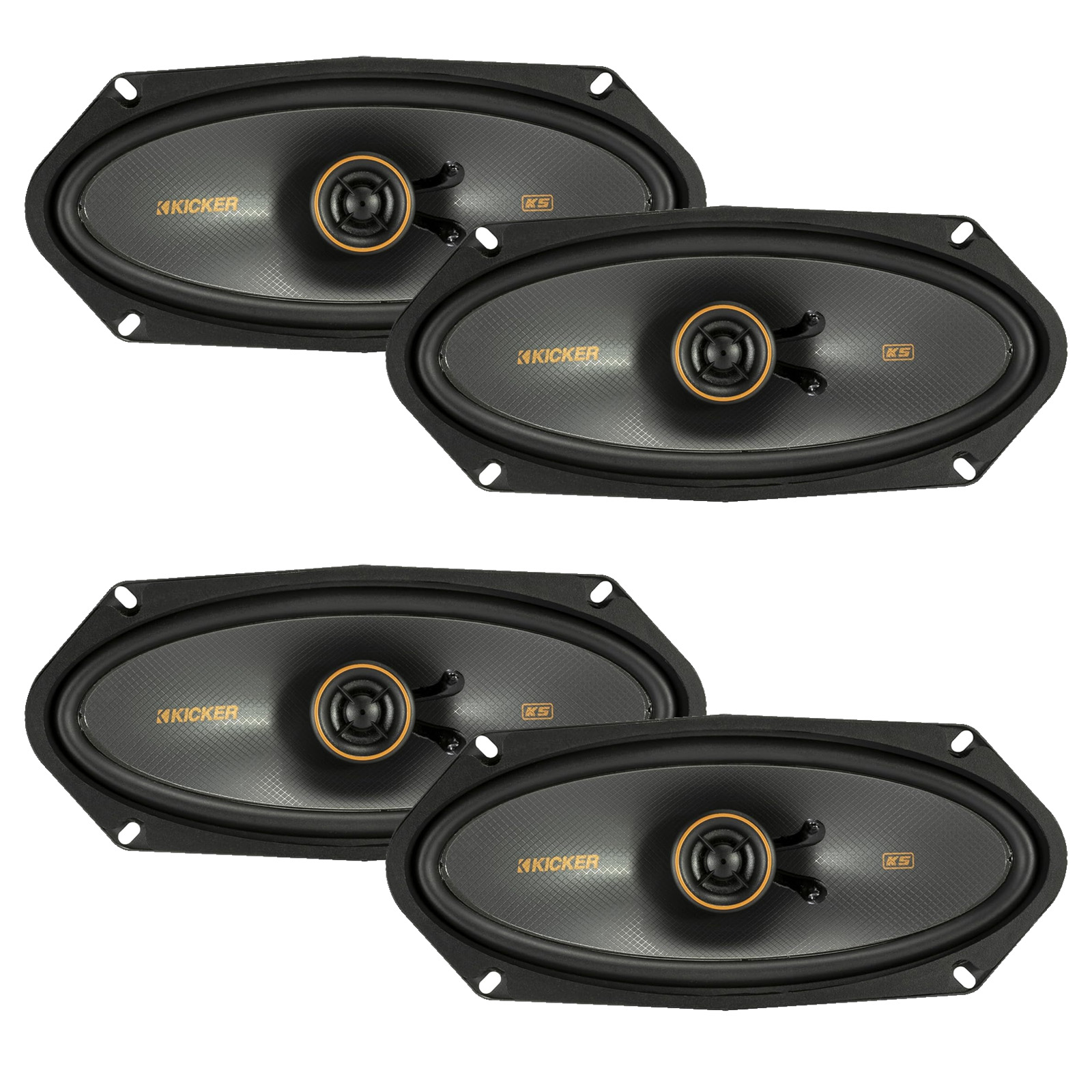 • Kicker KS-Series Speakers let you play at concert-like volume, yet maintain the smoothness and subtlety to please even the most selective ear. Internally dampened polypropylene cones and durable rubber surrounds assist the woofers in creating precise midrange and midbass, while high-quality silk-dome tweeters deliver natural, detailed highs.