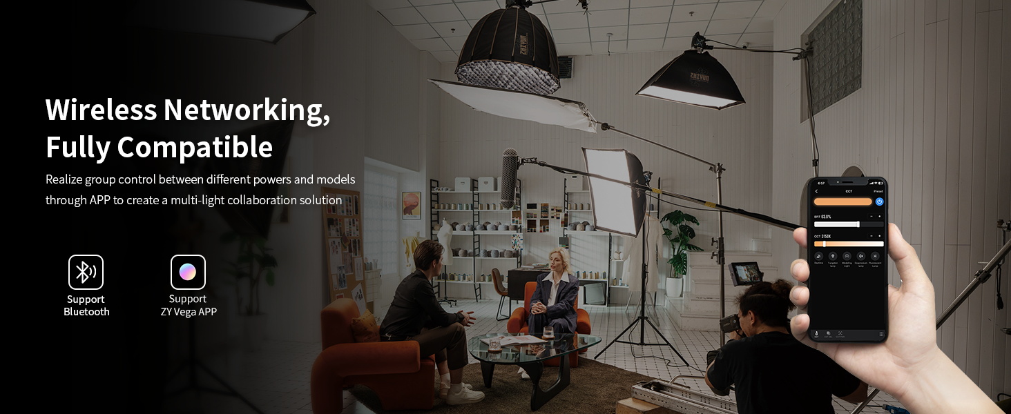Control a constellation of Zhiyun devices wirelessly with the ZY Vega APP and master the art of illumination from the palm of your hand.