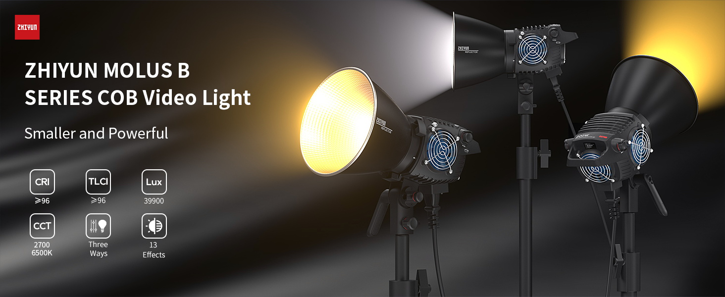 200W Powerful Lightweight Video Light: The ZHIYUN B200 200W video light delivers professional, powerful lighting in the easiest and lightest way in the industry. It is easy to use and set up. Compatible with the Bowens Mount, the ZHIYUN MOLUS B200 is ready to take on any lighting challenge. This feature ensures seamless integration with a wide range of lighting accessories, allowing users to shape the ideal lighting environment.