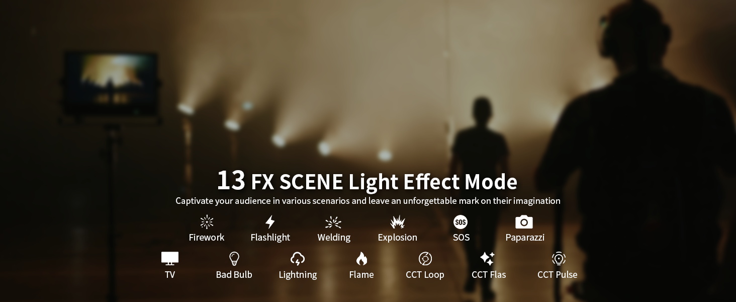 Supports Live mode to immediately light up your setup when connected to a power source and even power all your lights simultaneously with one switch in an indoor or live streaming setup. 13 Lighting effects captivate your audience in various scenarios and leave an unforgettable mark on their imagination.