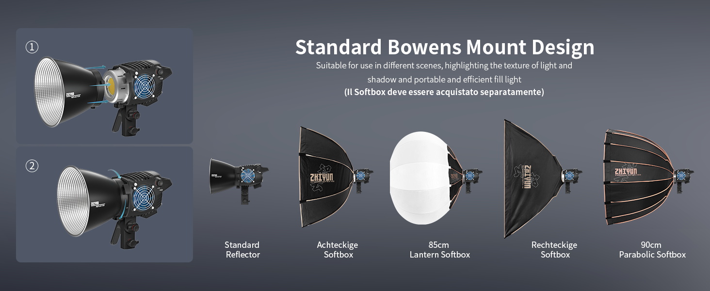 Craft perfect lighting with Zhiyun's precision accessories, featuring sleek modifiers and universal Bowen's mount compatibility for tackling any illumination challenges.