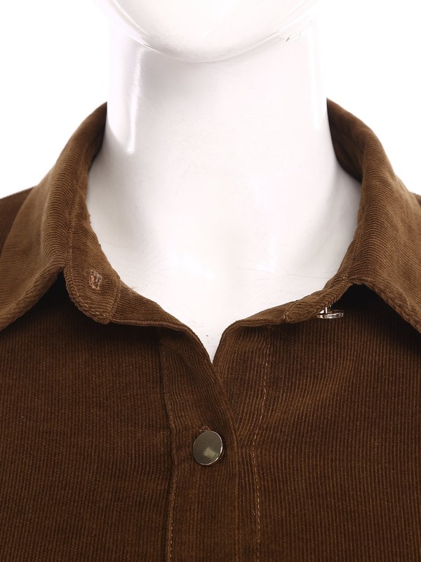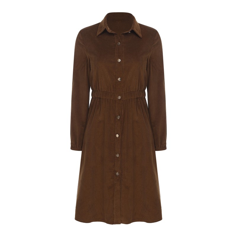 The corduroy fabric gives the dress a textured and retro look, which is in line with the current vintage-inspired fashion trend.