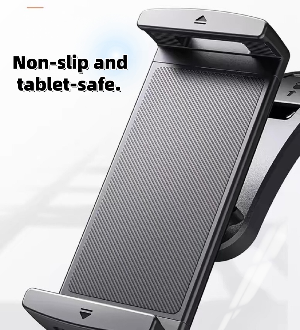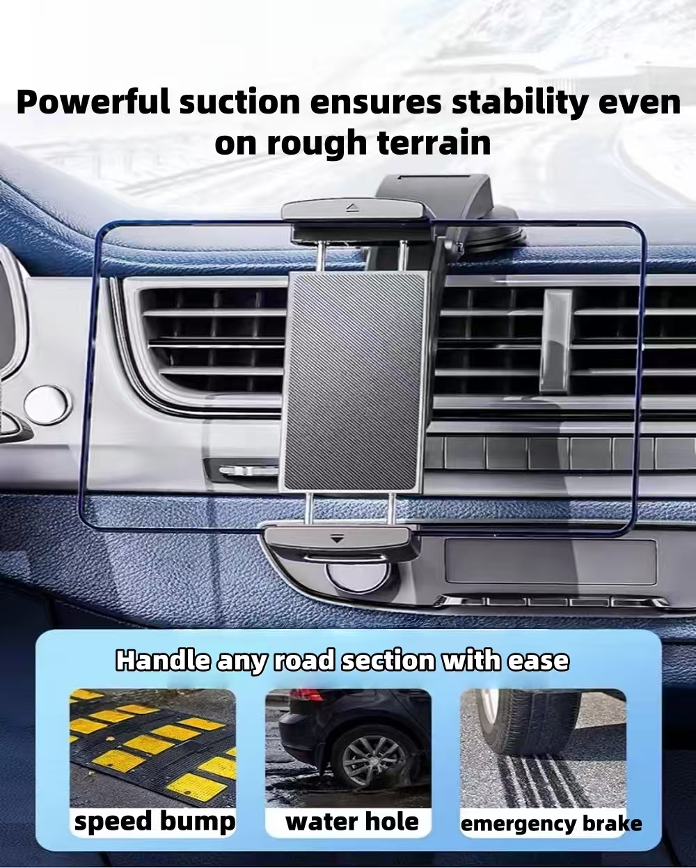 tablet mount cell phone holder car uses a powerful 3-layer viscous gel and a 1-step locking mechanism to provide strong suction on a smooth surface without leaving any residue.